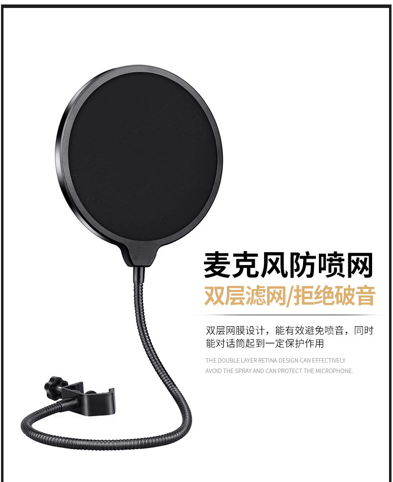 Factory Wholesale Anti-Spray Net Recording Anti-Spray Large Caliber Anti-Spray Net Microphone Double-Layer Windproof Spit Protection Cover