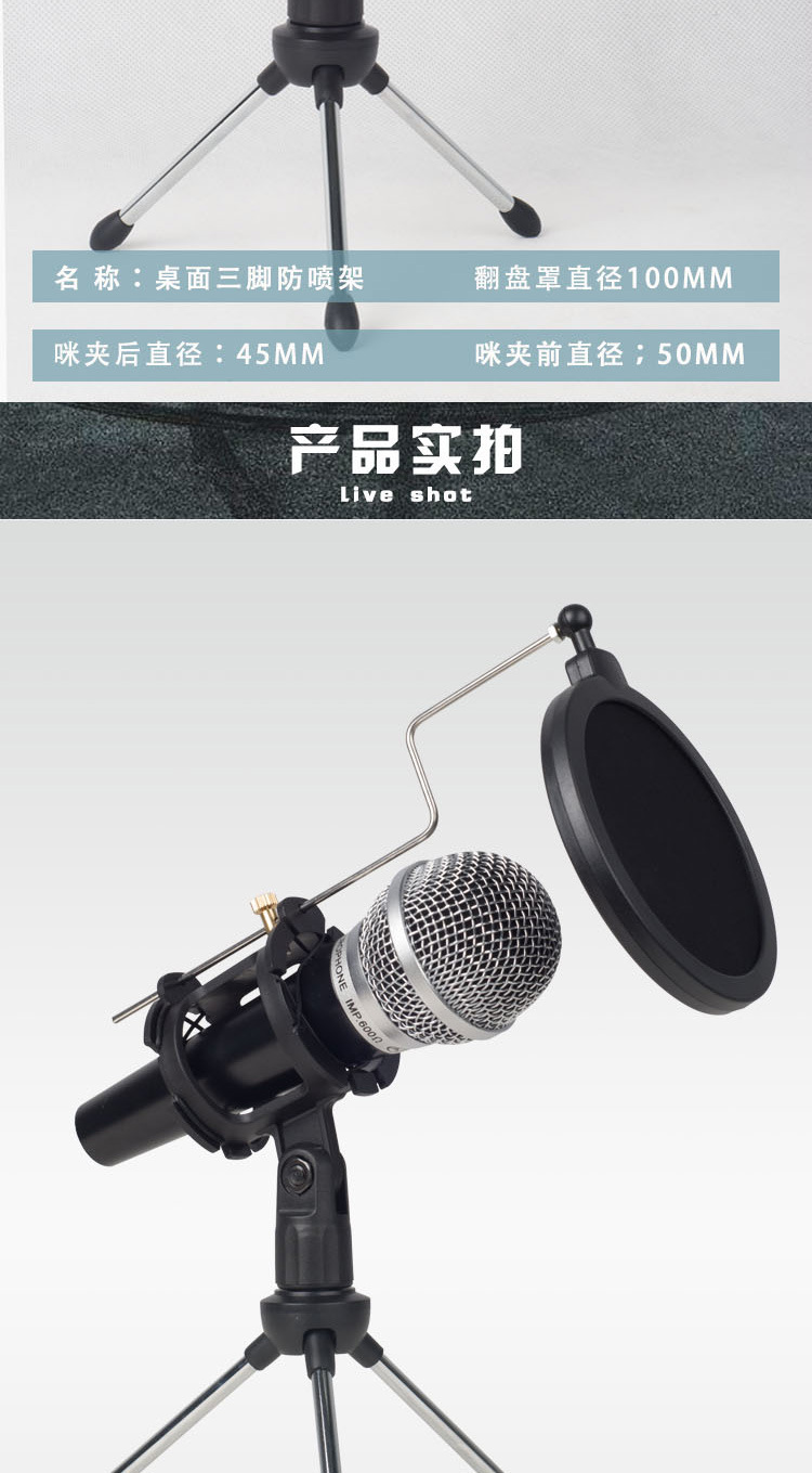 Factory Direct Sales Anchor Microphone Tripod Bracket Universal Spring Clip Mobile Phone Computer Desktop Karaoke Bracket