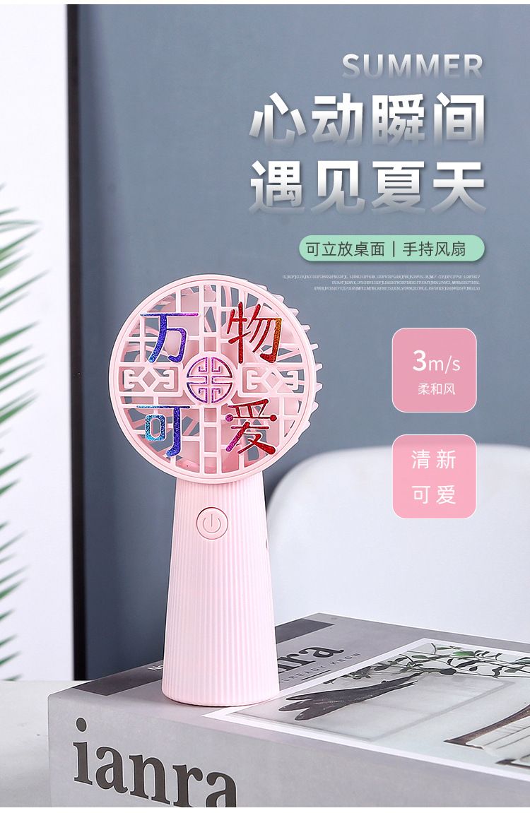 About Product:Cartoon handheld rechargeable fan student pocket portable outdoor USB mini fan