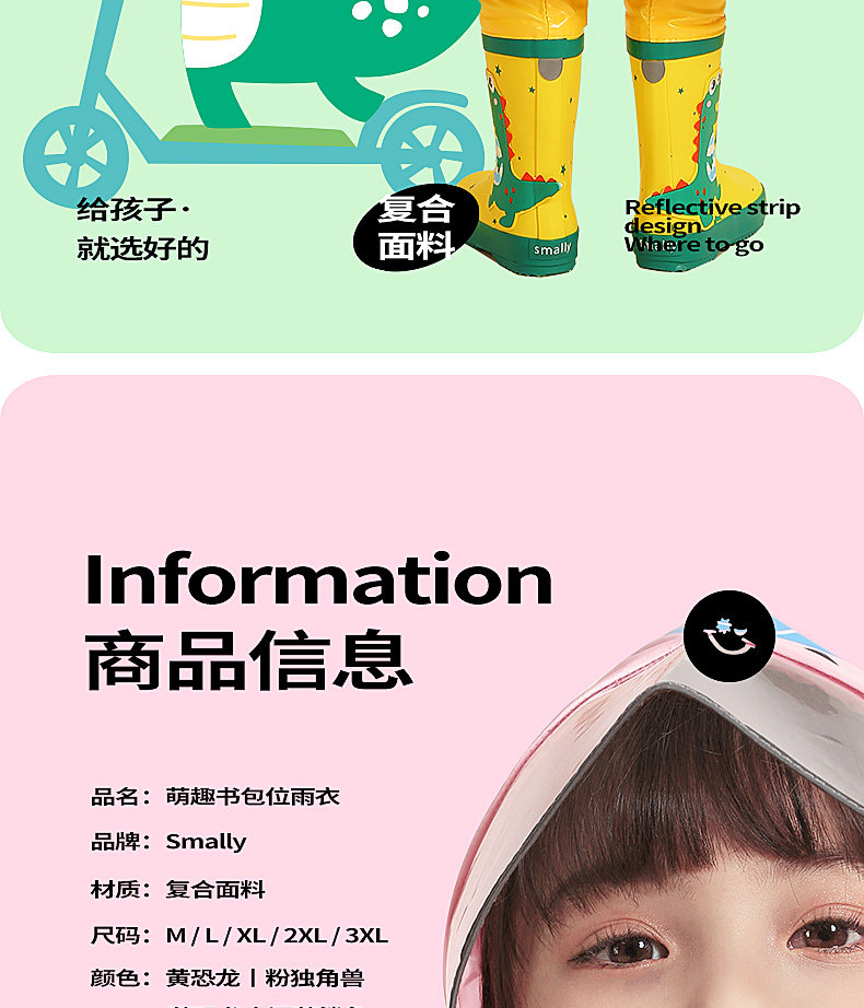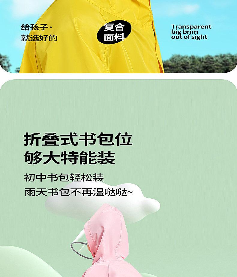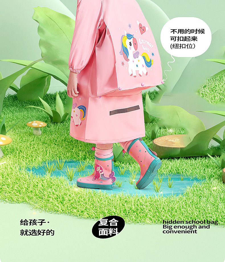 children raincoat boy primary school student with schoolbag seat school poncho girl 2023 medium and large children's suit waterproof body