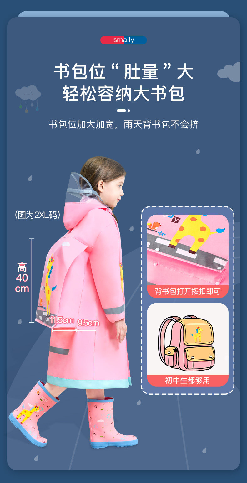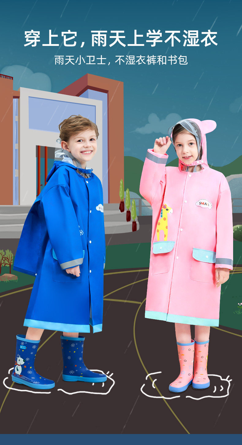 smally children raincoat girls primary school student schoolbag kindergarten older children long body rainproof poncho men
