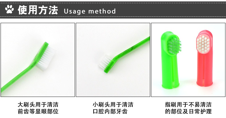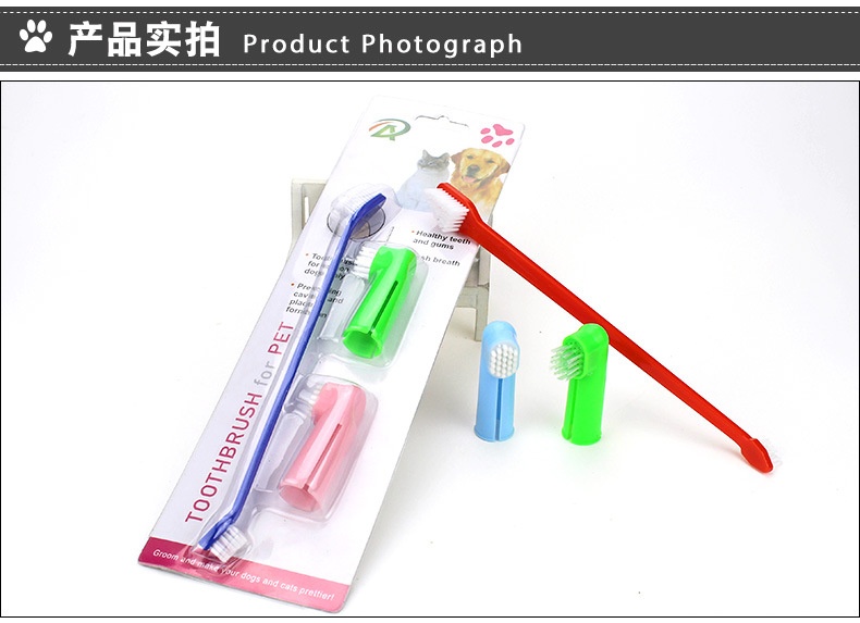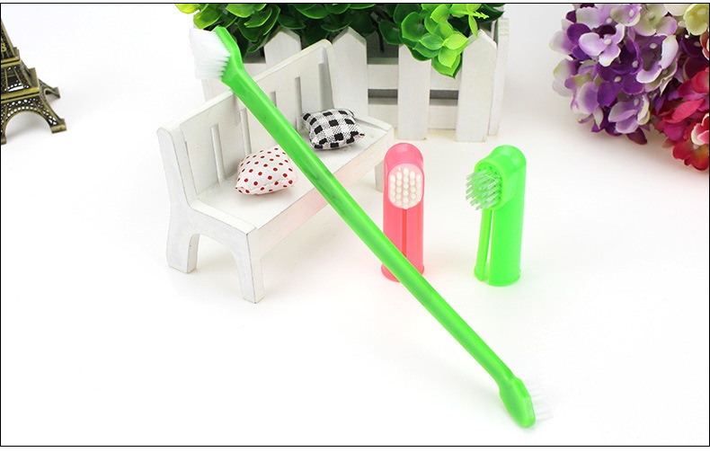 Pet Toothbrush Three-Piece Double-Headed Toothbrush Dog Finger Brush Cat Finger Brush Suit Supplies