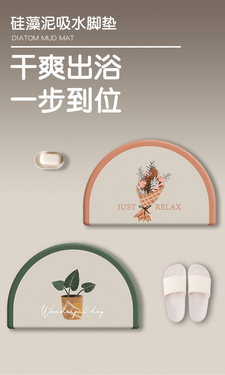 Nordic Semicircle Diatom Mud Absorbent Pad Quick-Drying Toilet Floor Mat Bathroom Absorbent Floor Mat Soft Kieselguhr Ground Pad