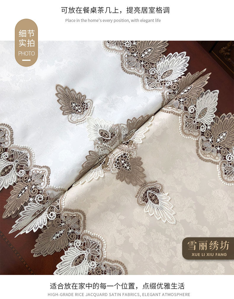 62 * 117cm (beige): jacquard fabric two-tone lace