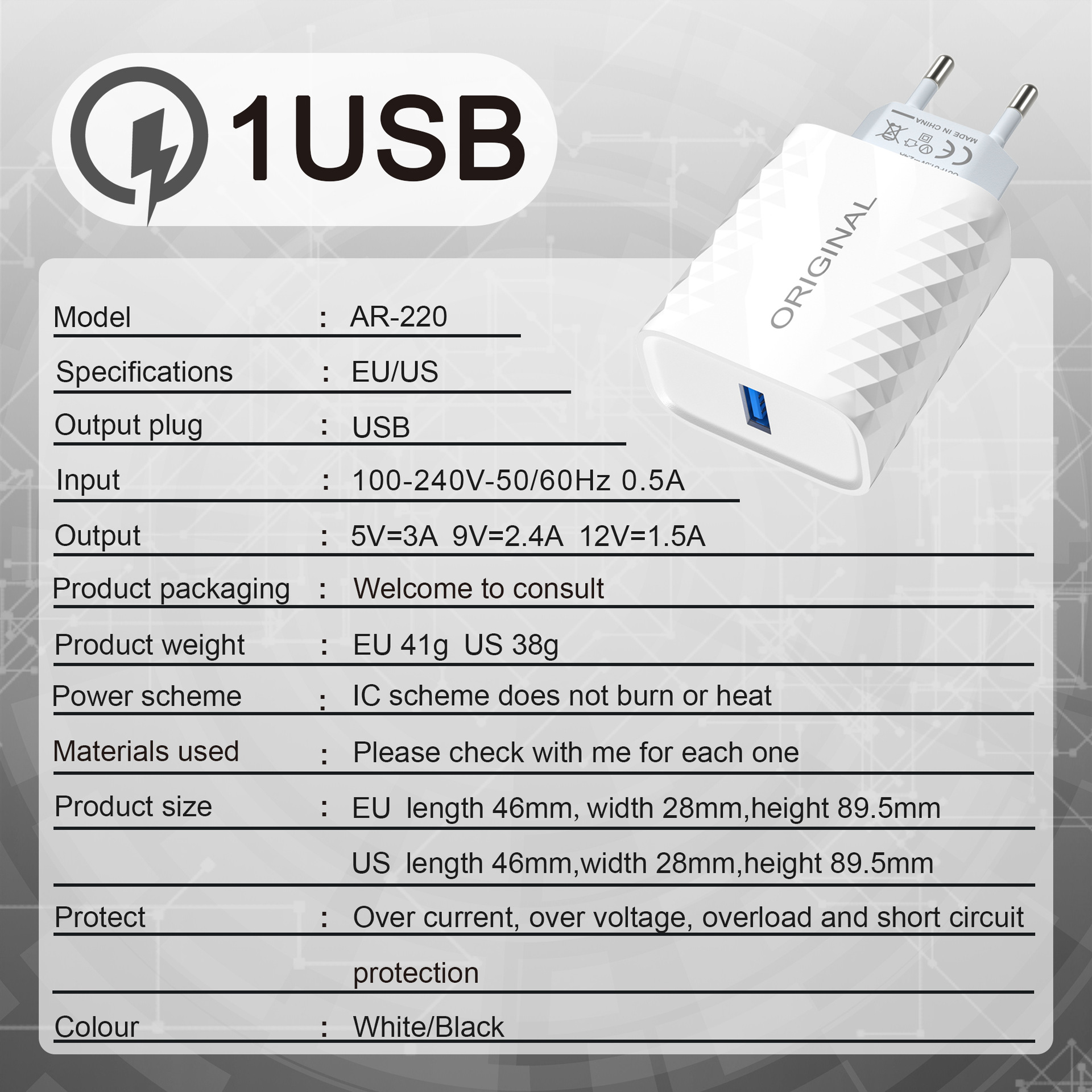 4. Product material: ABS + PC fire retardant material.