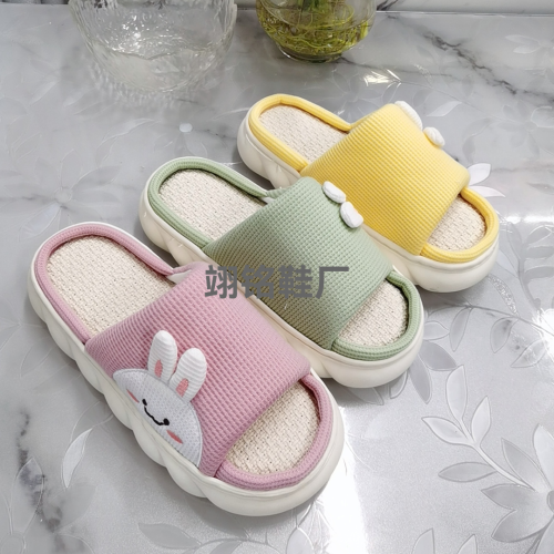spring and summer new inflatable slippers thick bottom linen embroidery breathable sweat absorbing japan and south korea export amazon cute men and women slippers 中文版