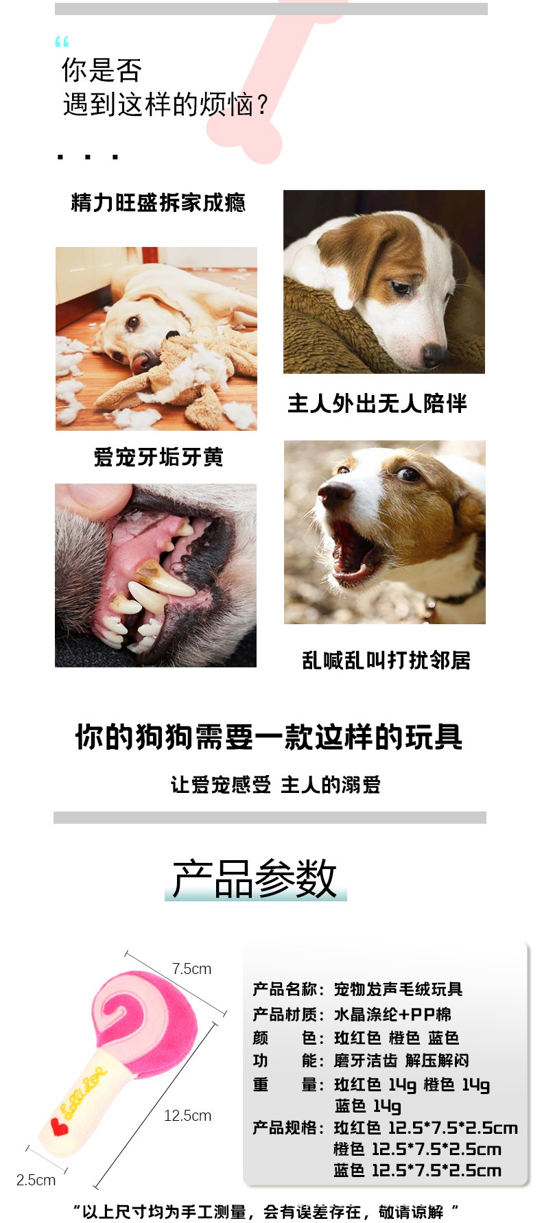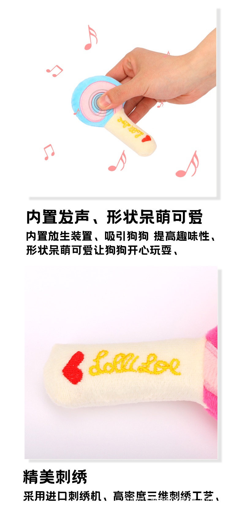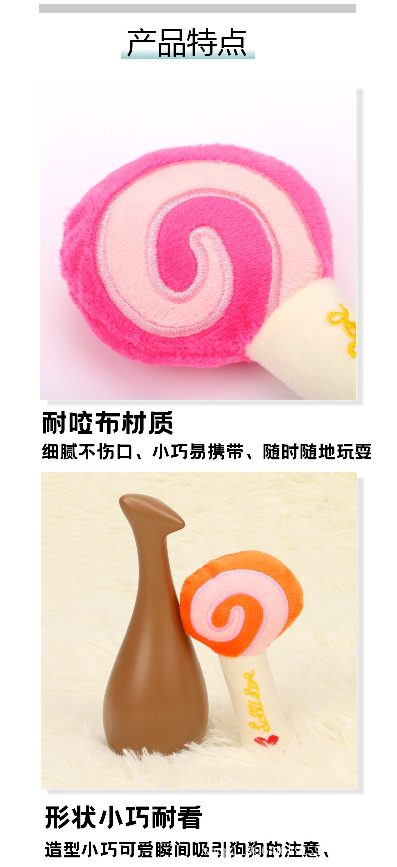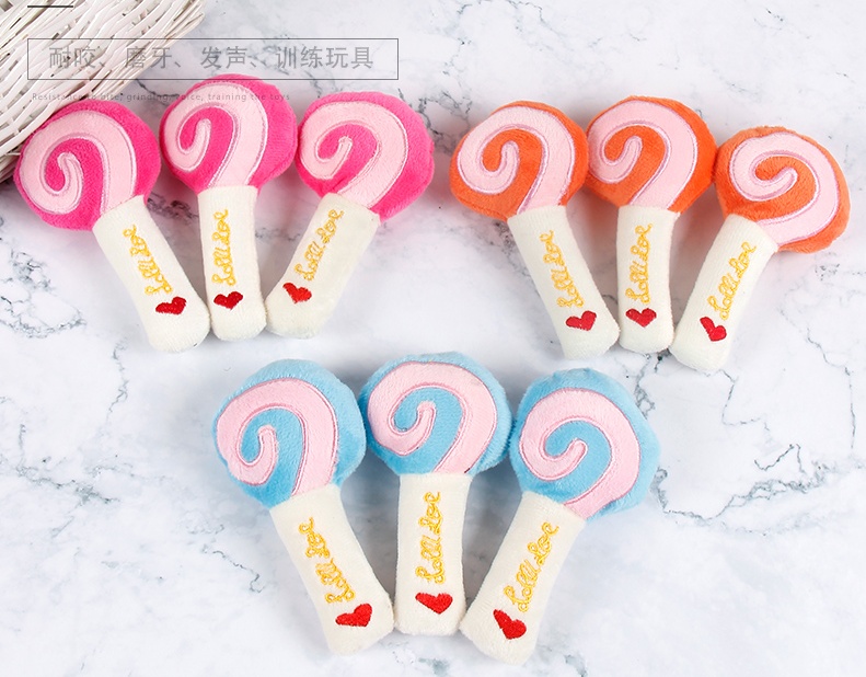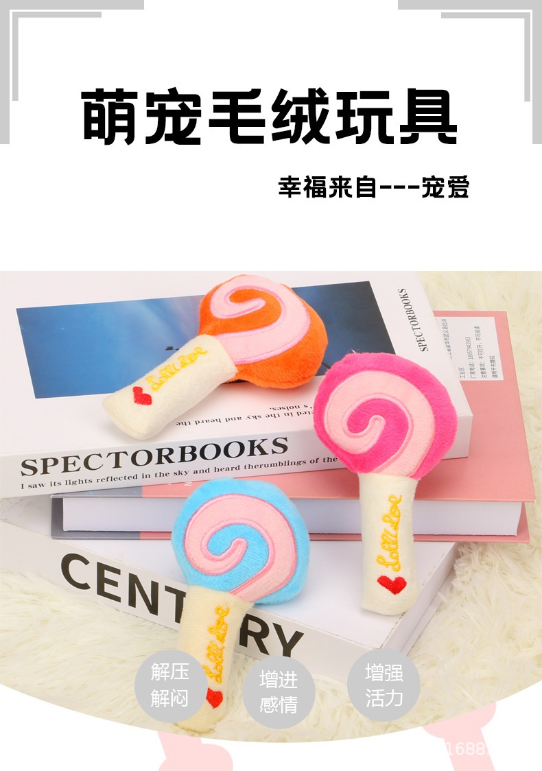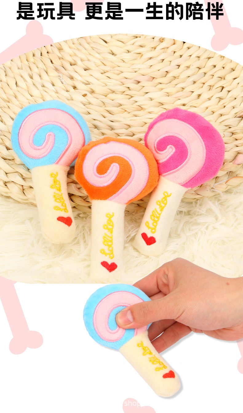 Popular Lollipop Tear-Resistant Interactive Plush Sound Cat Dog Molar Pet Toy