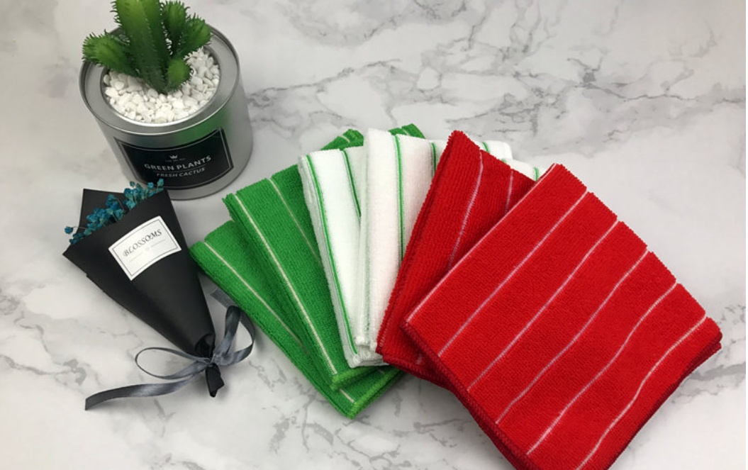 Product Name: Ultra-fine fiber wide color stripe color base white base Christmas towel set of six. There are dozens of colors, just listed some colors, support color custom!