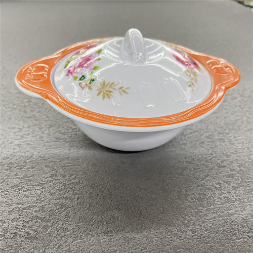 foreign trade melamine lid bowl set steamed rice steamer with lid melamine tableware porcelain white soup bowl factory wholesale