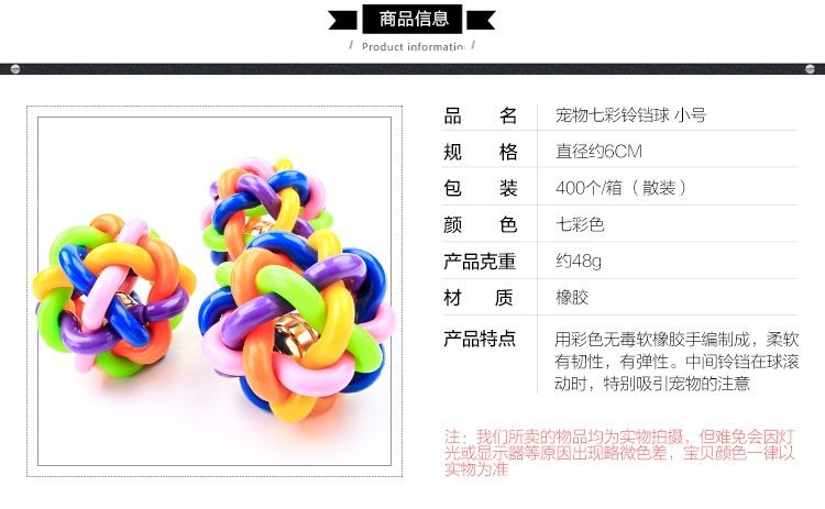 T Sounding Dog Toy 6cm Pet Colorful Bell Ball Pet Toy Vocal Ball Pet Supplies