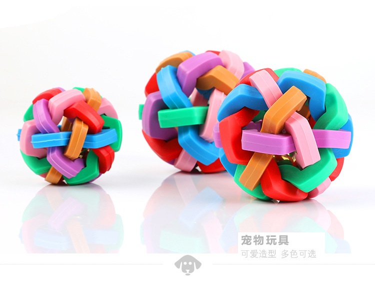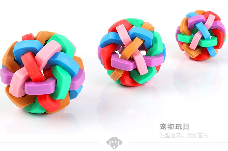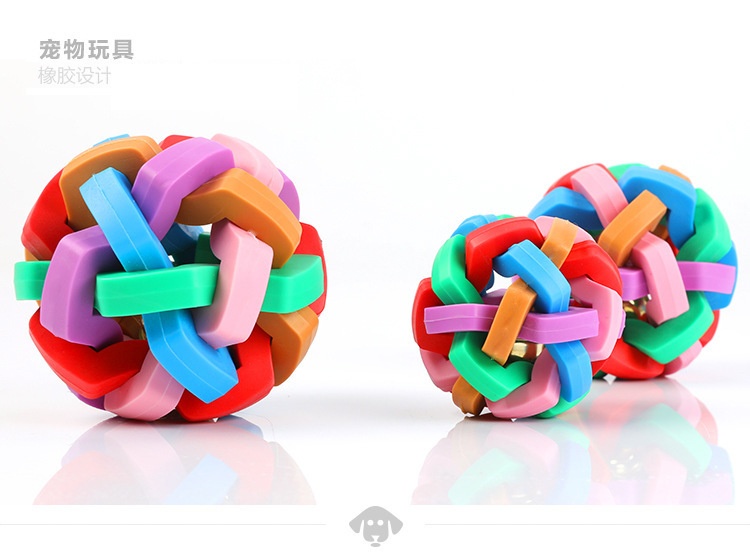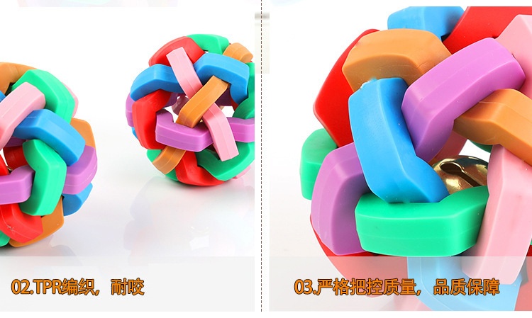 Dog Toy Colorful Bell Ball TPR Material Vocal Weaving Teether Ball Pet Interactive Toy