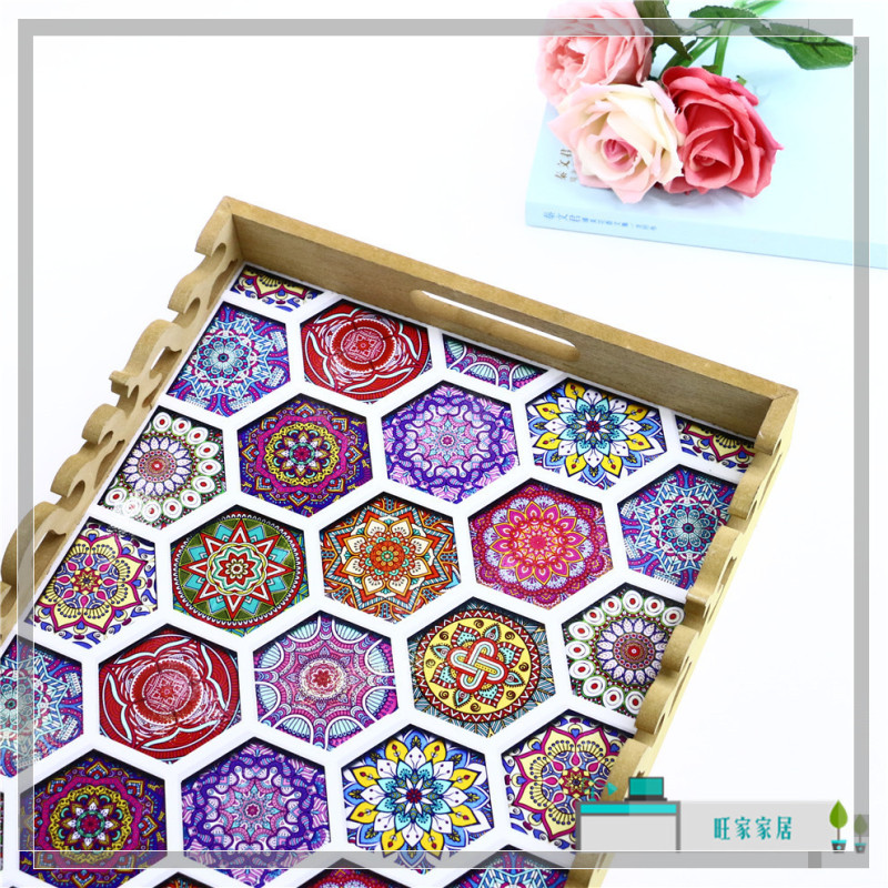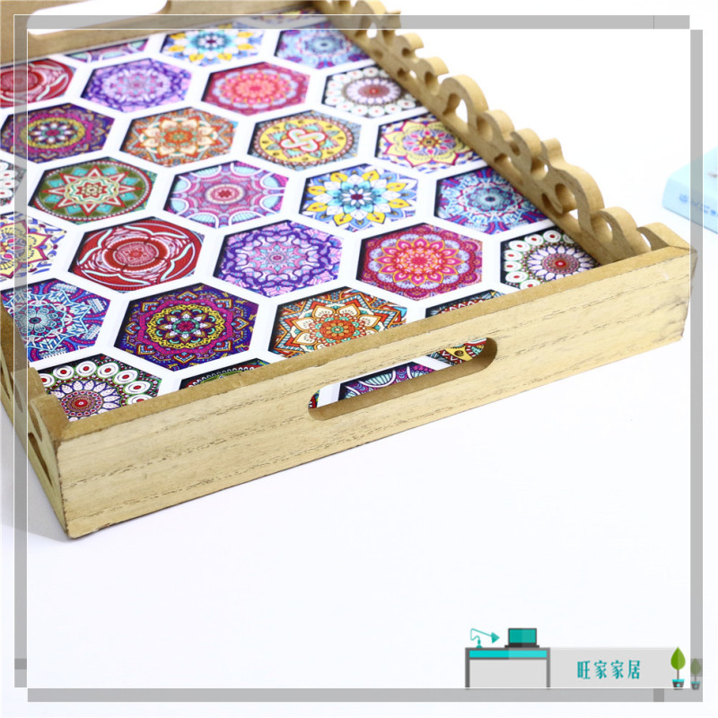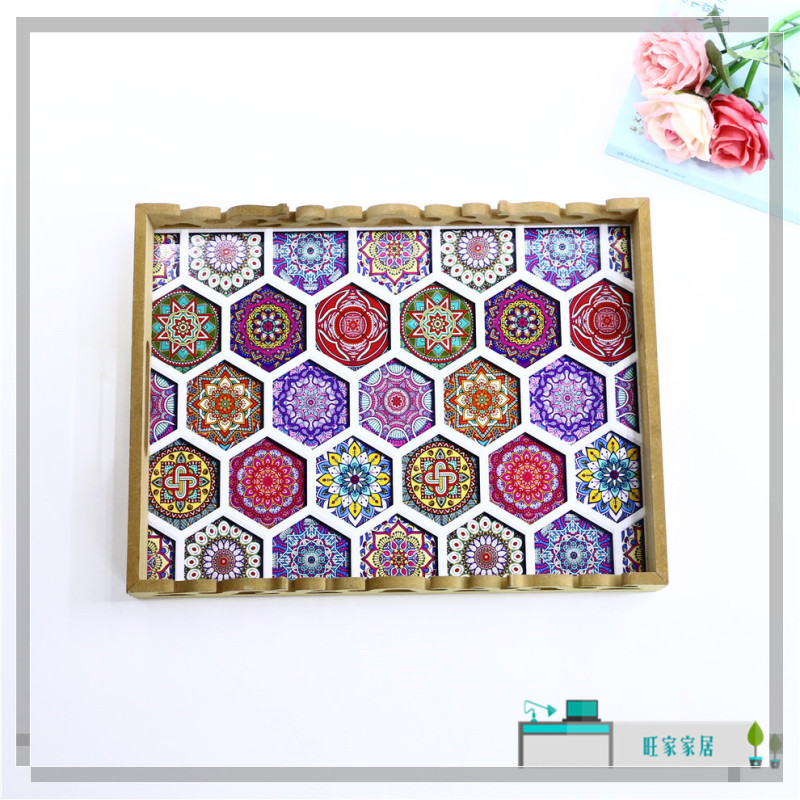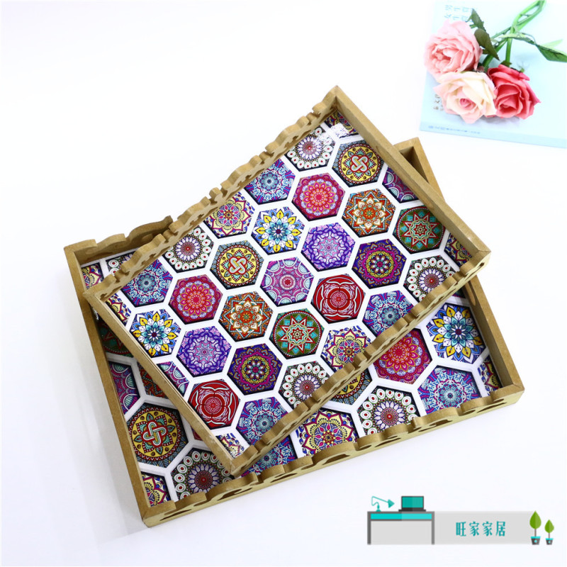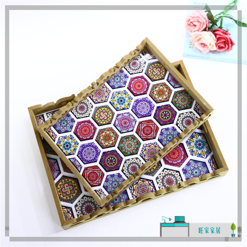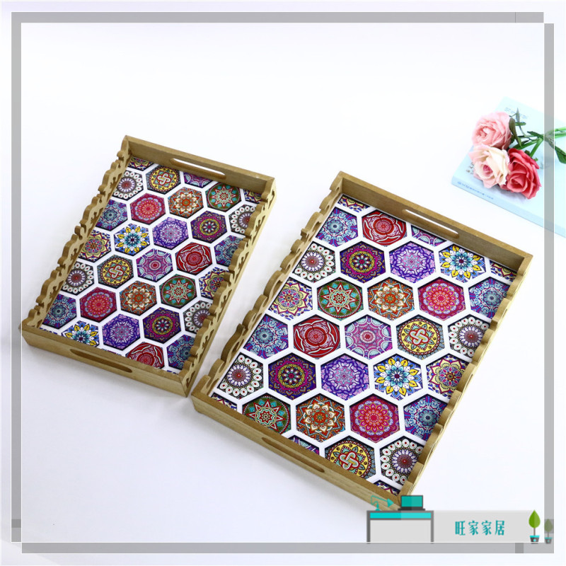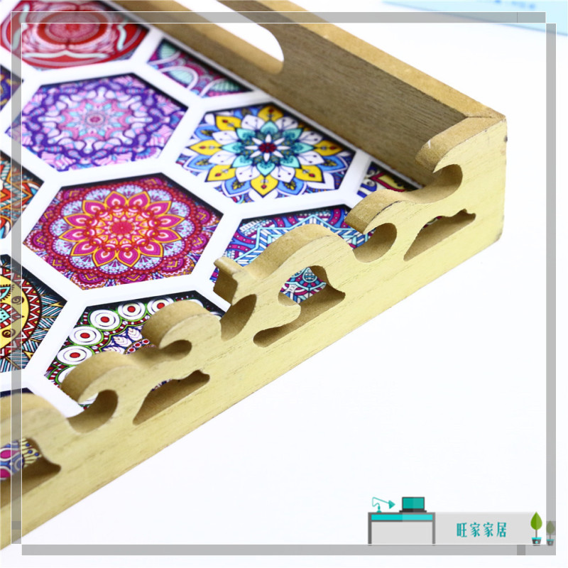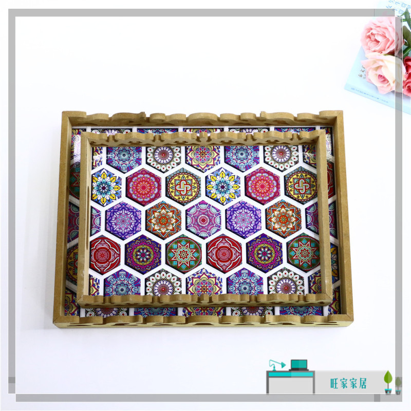 rectangular wood carved tray high-end restaurant water glass plate dim sum plate home creative coffee table storage tray