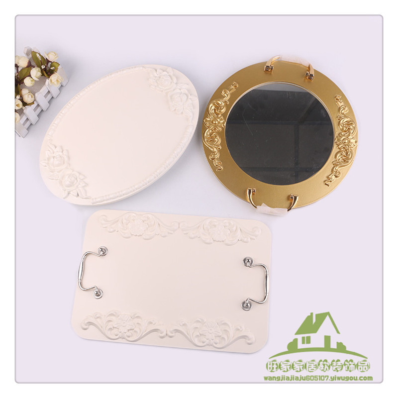 nordic style rectangular round retro carved tray mirror tea fruit dessert coffee dessert table storage tray