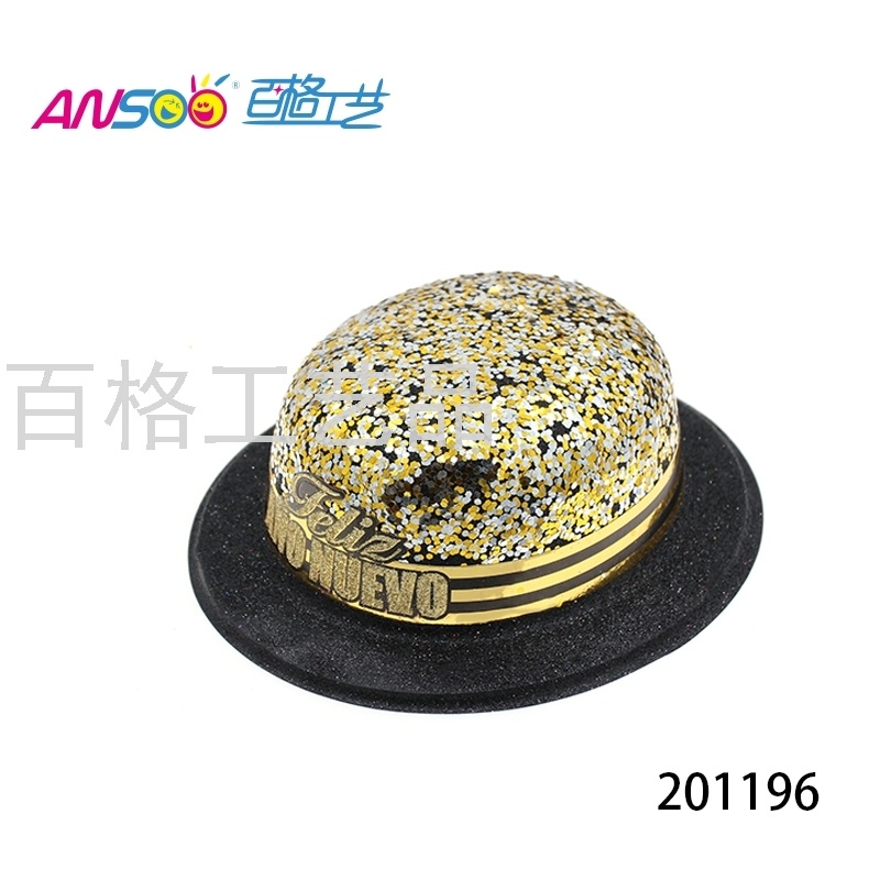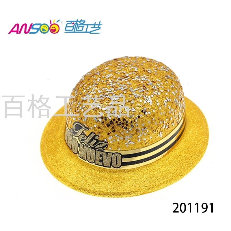 gold powder custom pvc round cap big star sequins new year round cap new year party custom hat