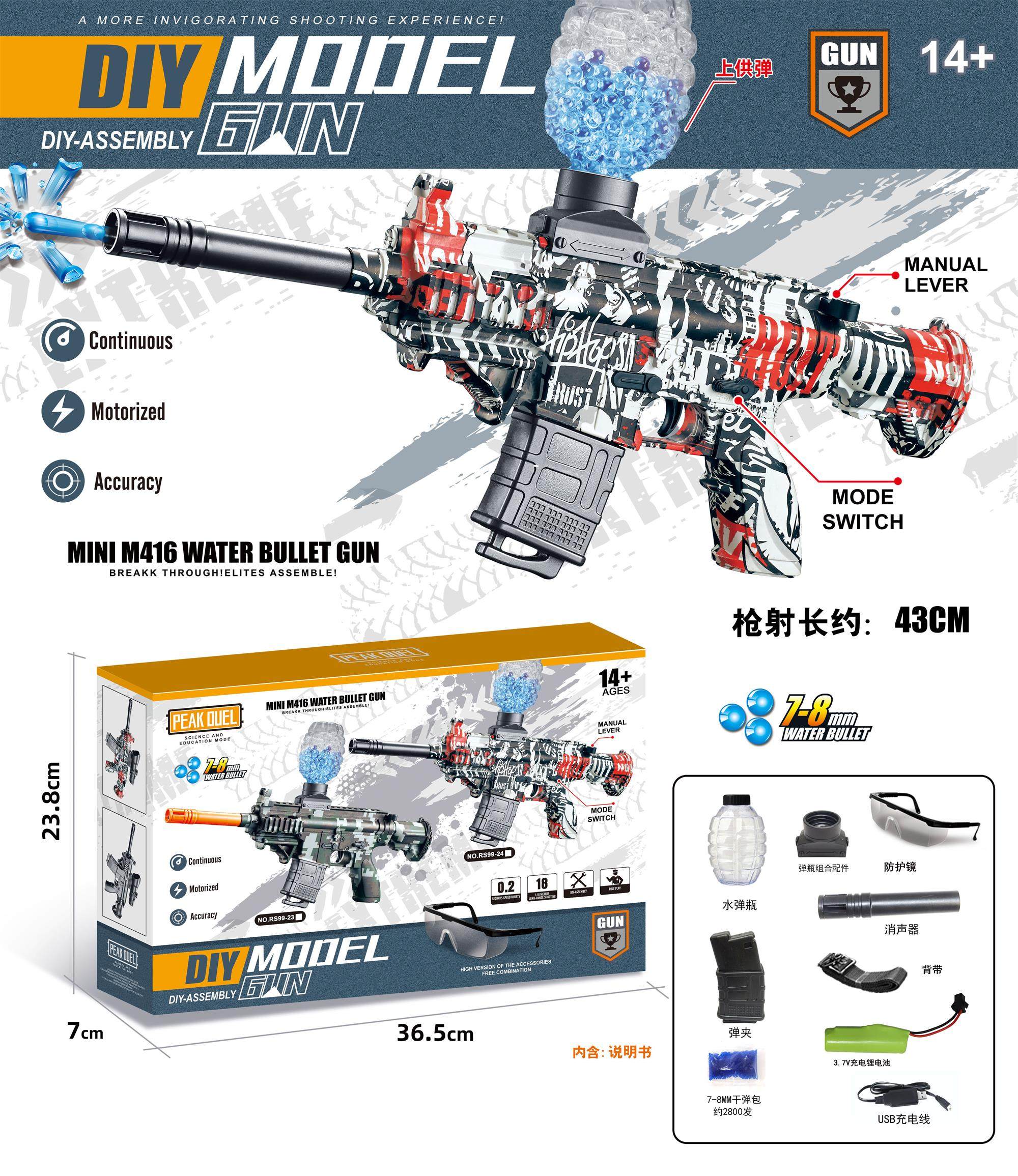 M416 Amazon hot-selling graffiti water gun, hand-operated electric firing gun prop, soft-tactical toy gun