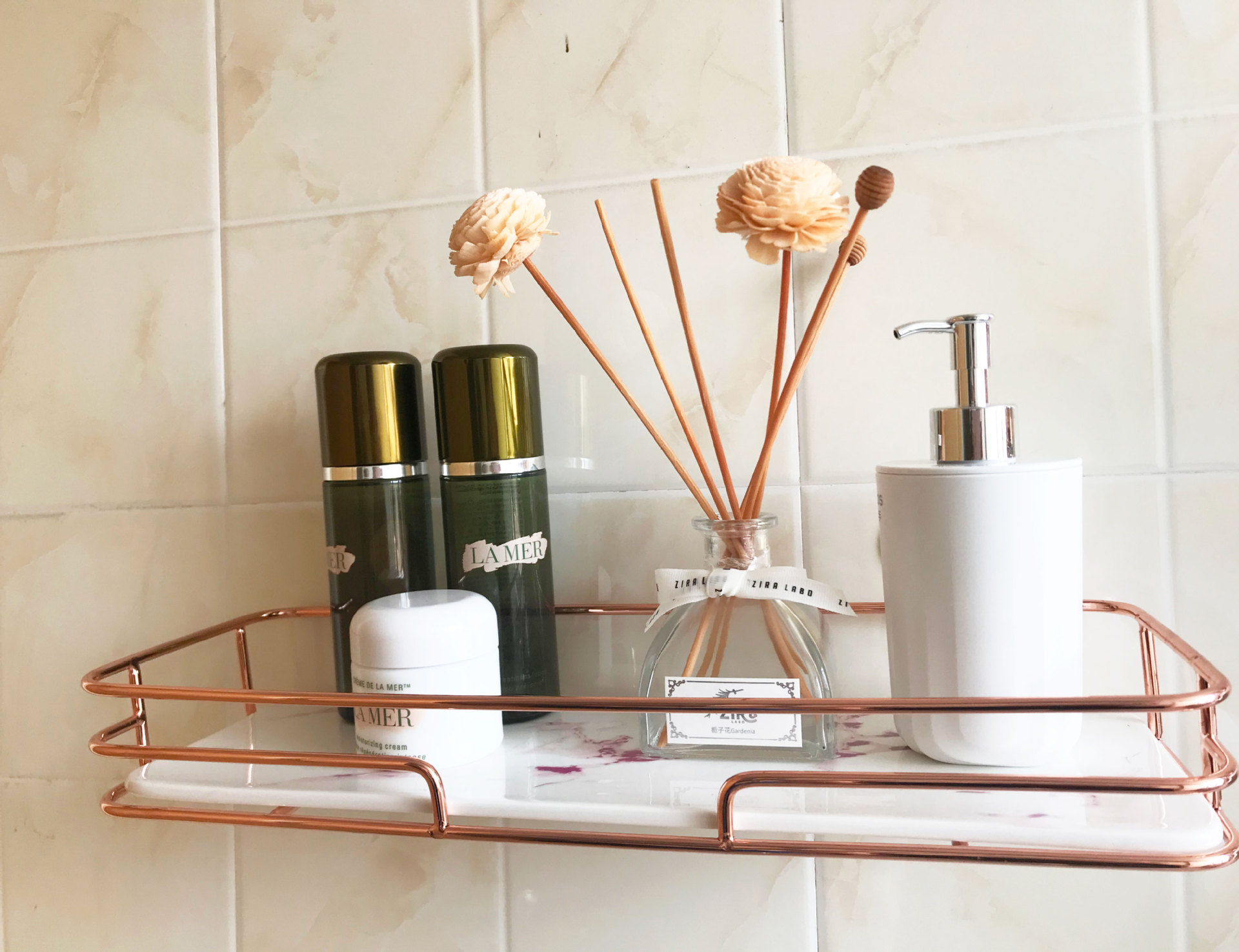 rose gold border + black stone plate