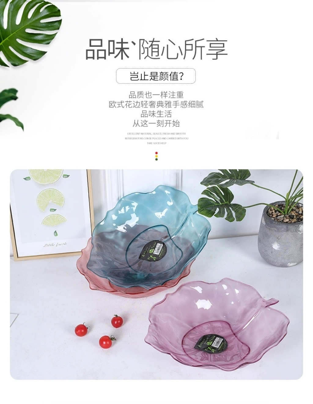 m07-0652 aishang round leaves colorful crystal fruit plate home living room pet creative fruit storage