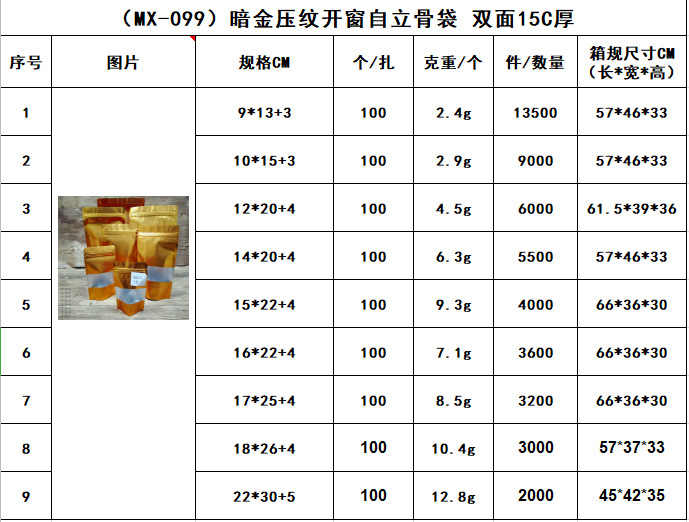 | aluminum foil self-supporting bone bag 10*15+3 | ¥0.14 | 999999 piece available |