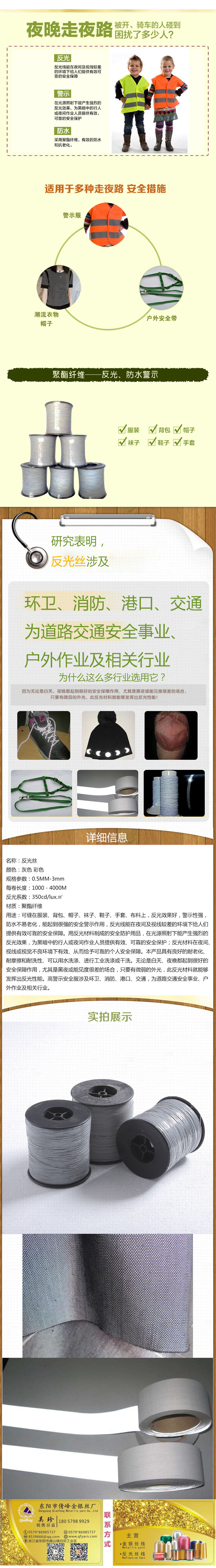 Our company is a professional manufacturer of reflective yarn. Our reflective series products are made by coating high refractive index reflective glass beads densely on various resin substrates, which produces a strong reflective effect. Therefore, they are widely used in various fields, especially in traffic safety and personal outdoor sports products, such as traffic signs, clothing, sports shoes, hats, luggage, umbrellas, raincoats, tents, and other outdoor products.
