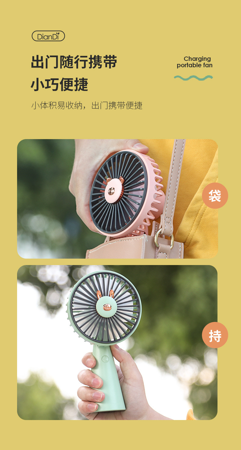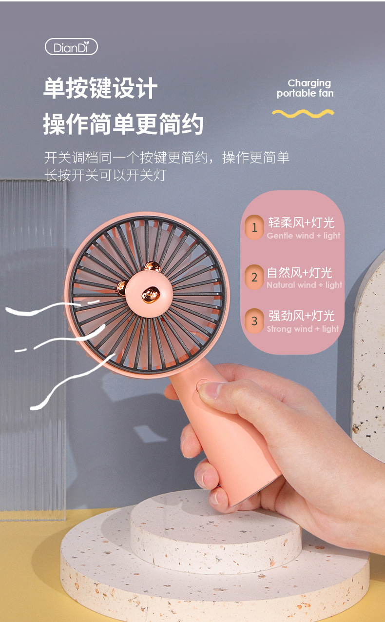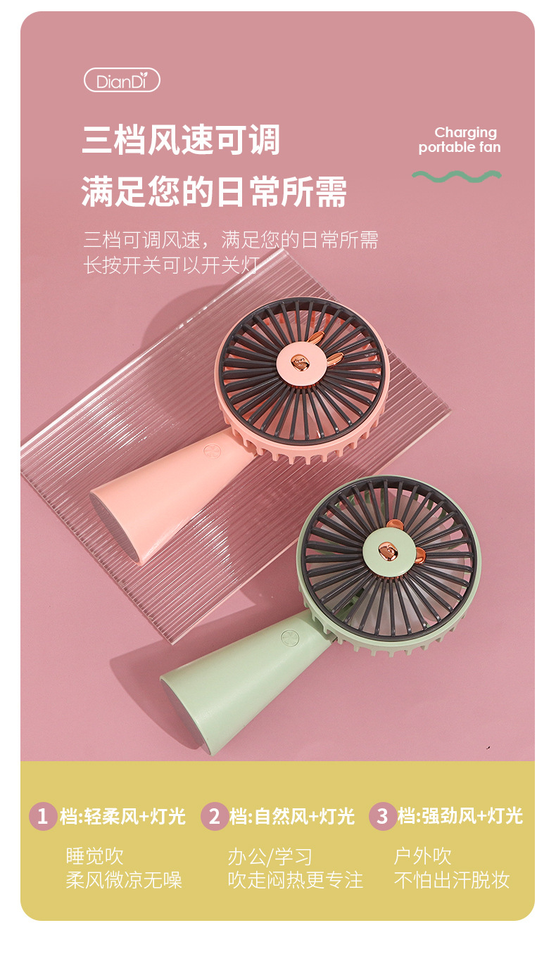 [Product name] cartoon colored lights rechargeable fan