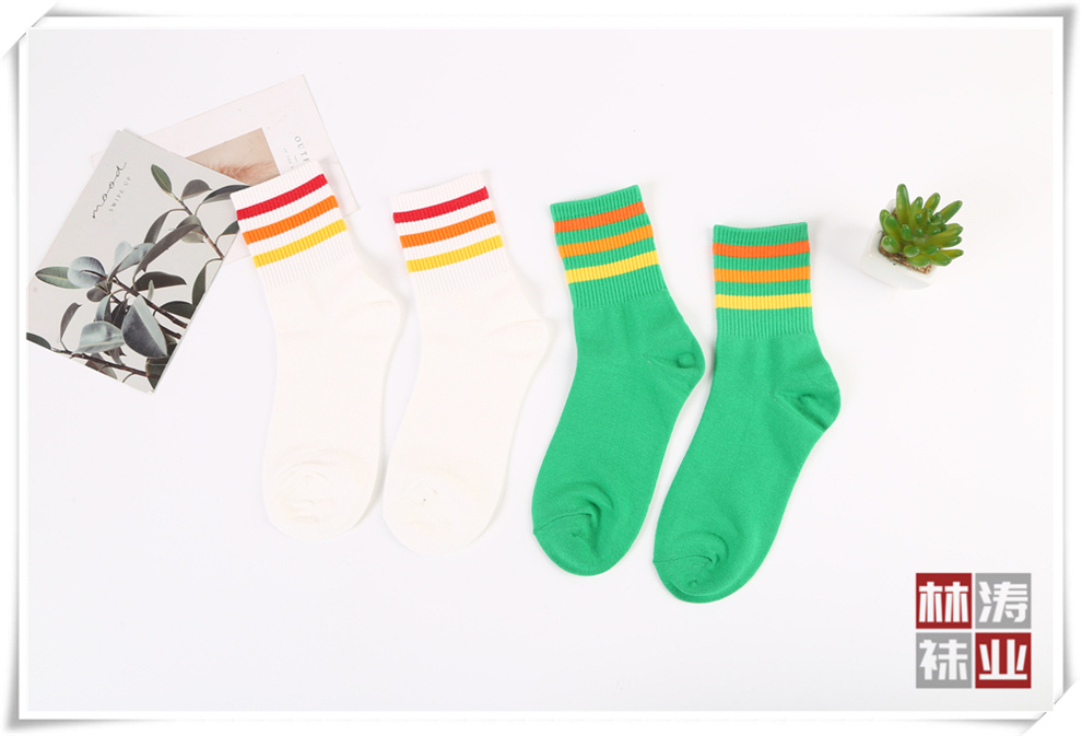 Product Name: colorful striped socks mouth autumn and winter simplicity color athletic socks cotton texture sweat-absorbent breathable mid-calf socks factory direct sales