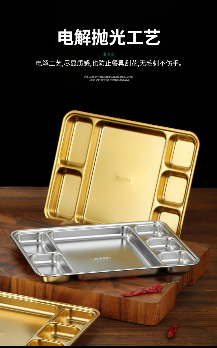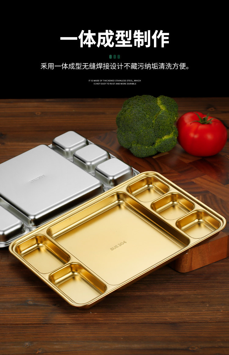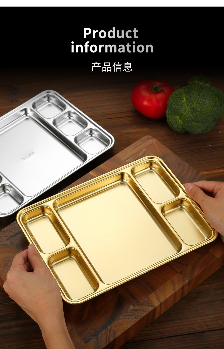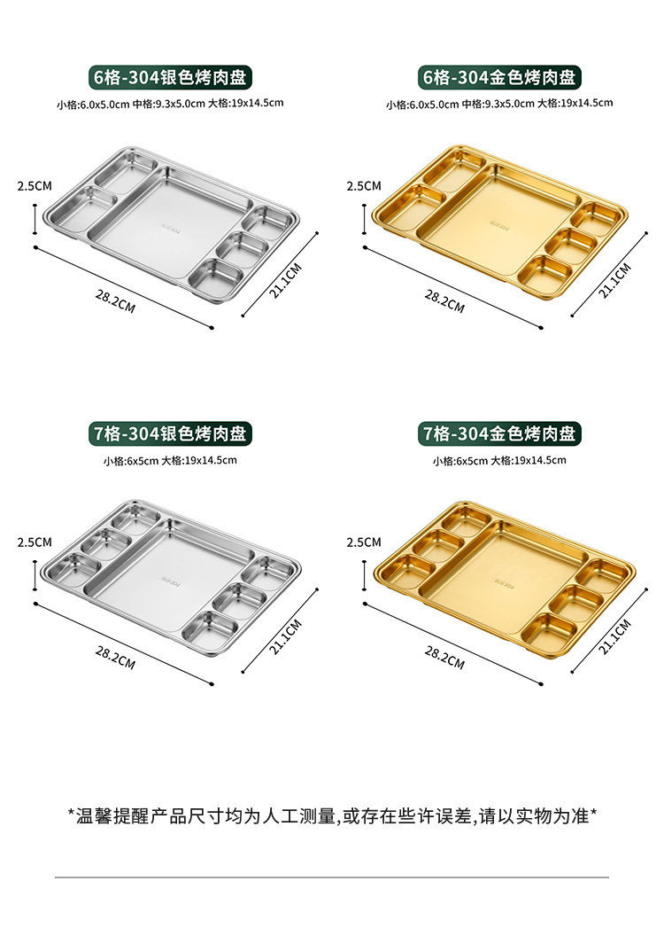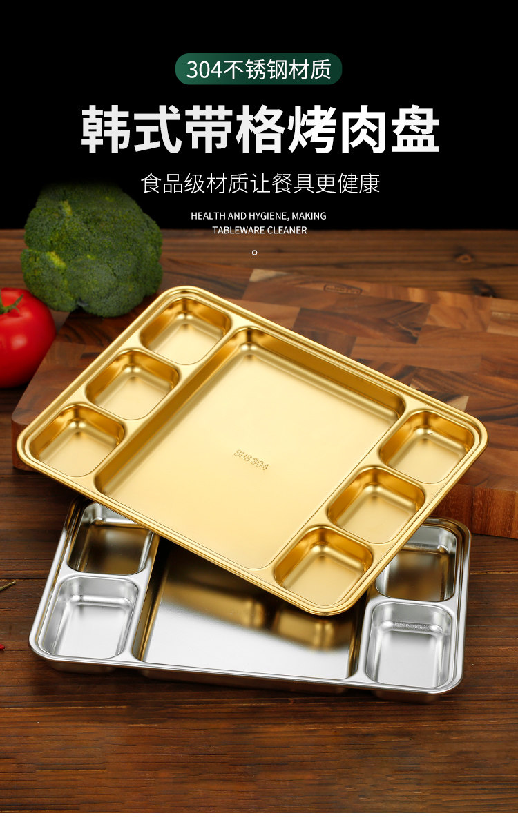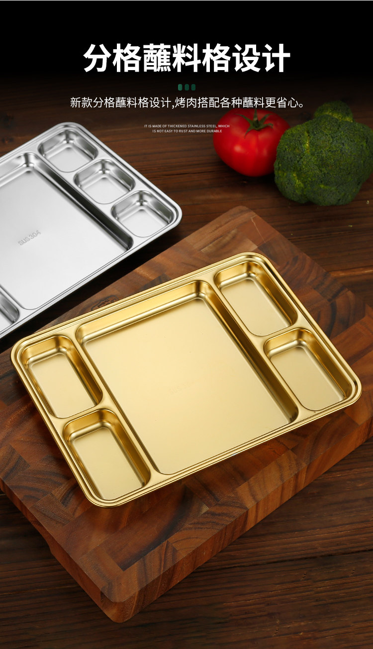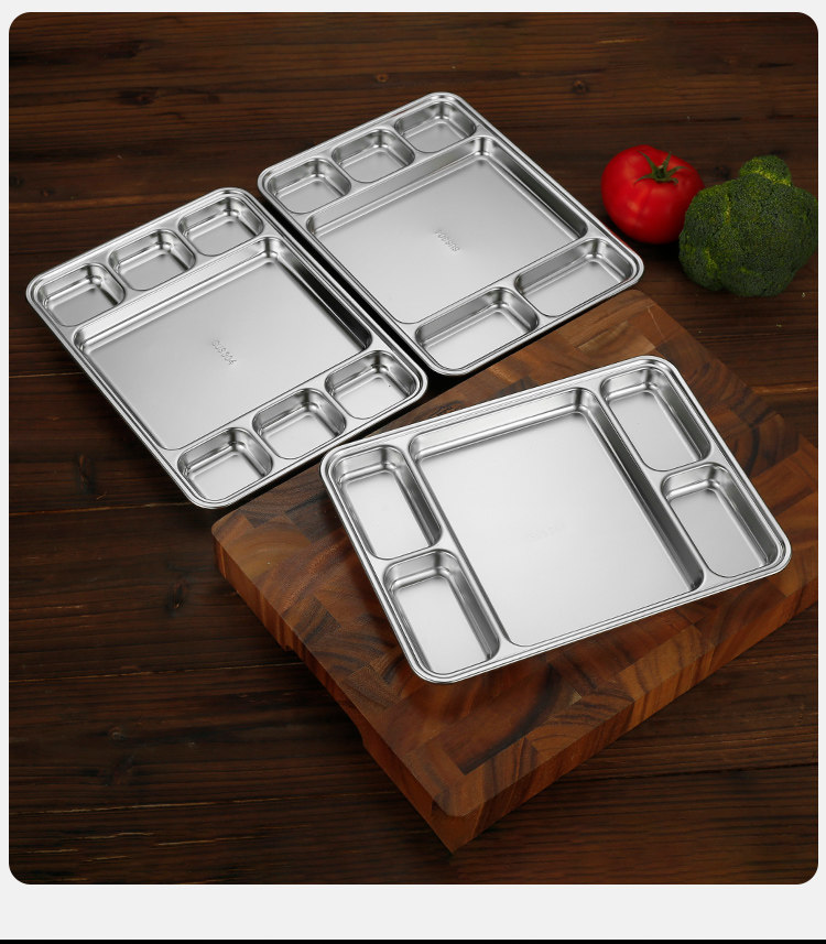 304 stainless steel grid barbecue plate square stainless steel student fast food plate canteen plate five grid six grid plate