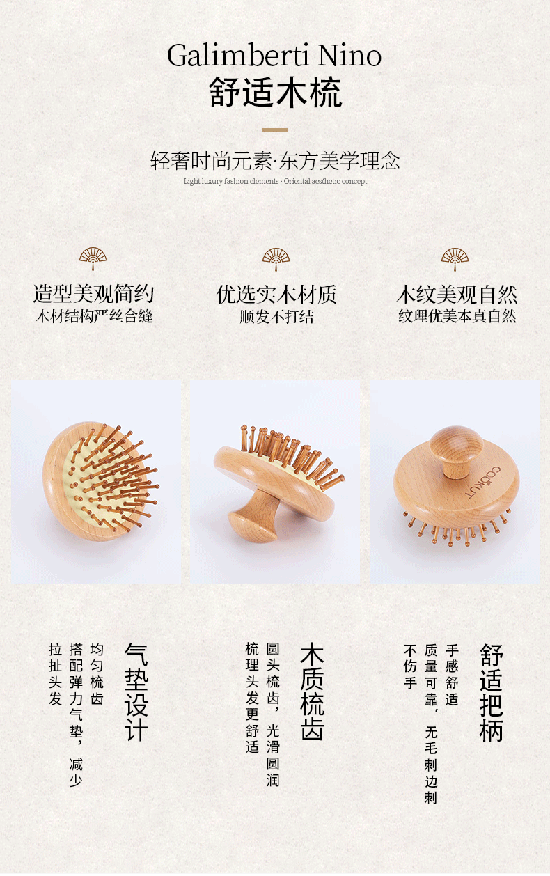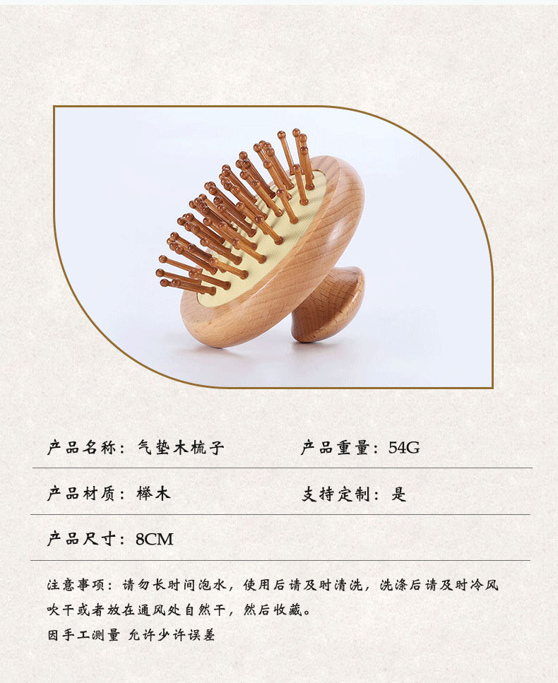 Factory Small Beech Airbag Cushion Comb Leather Massage Comb Small Portable Wash and Shunfa Airbag Comb Wholesale