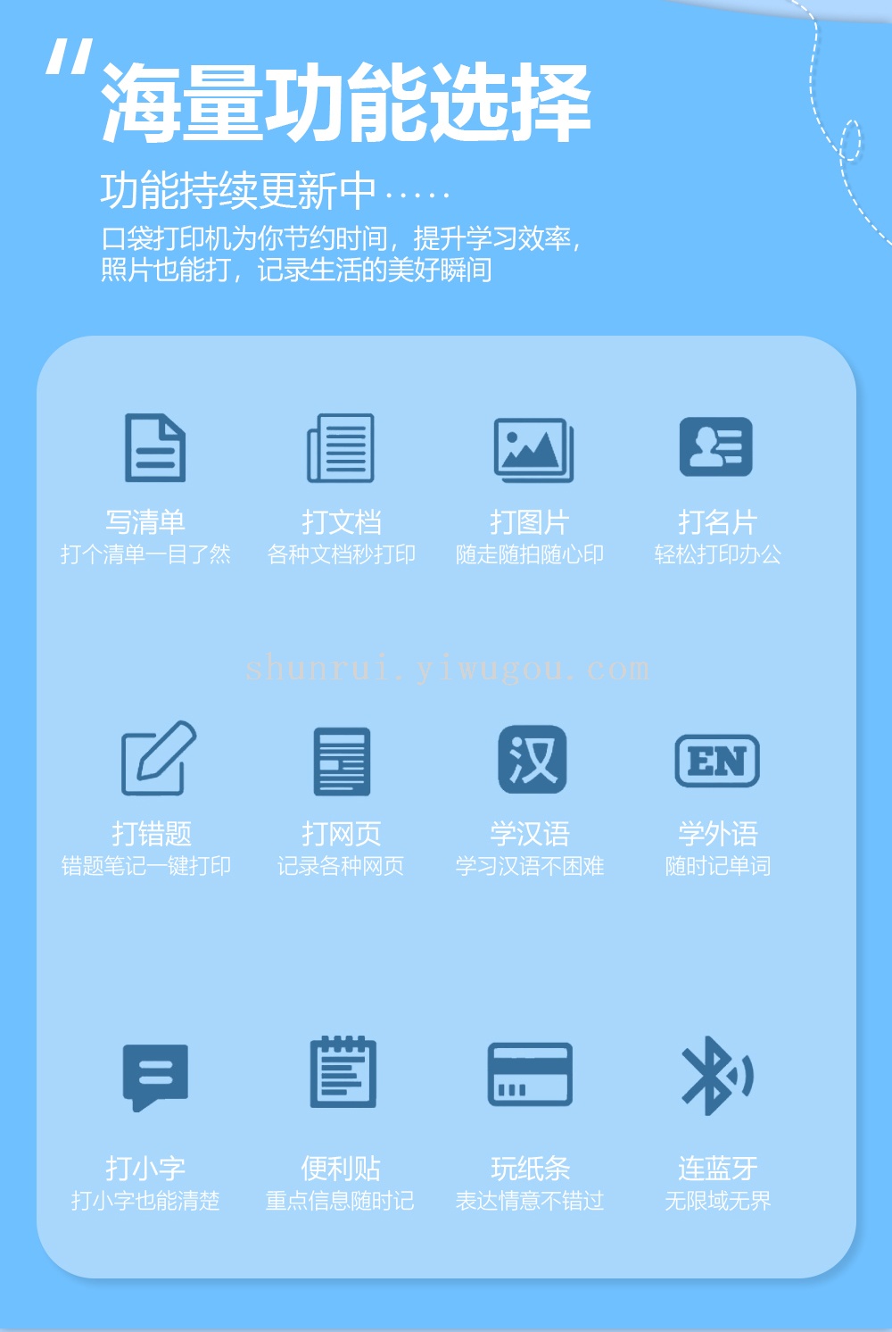 Connection method: Bluetooth wireless, ink-free black and white printing