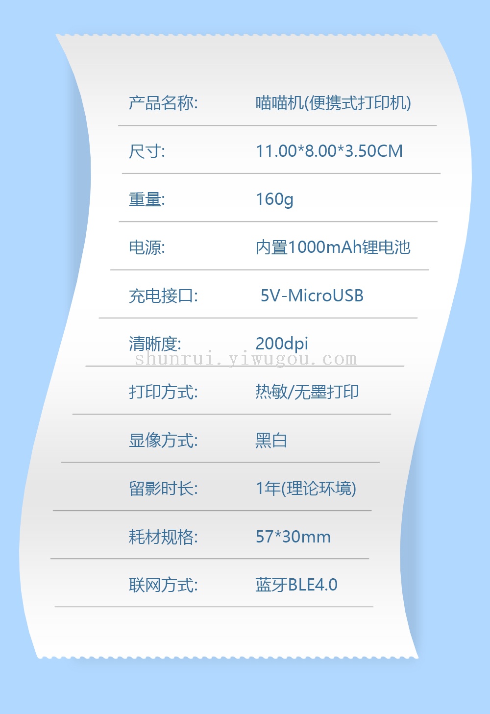 Printing Method: Thermal-sensitive, no-ink black and white printing
