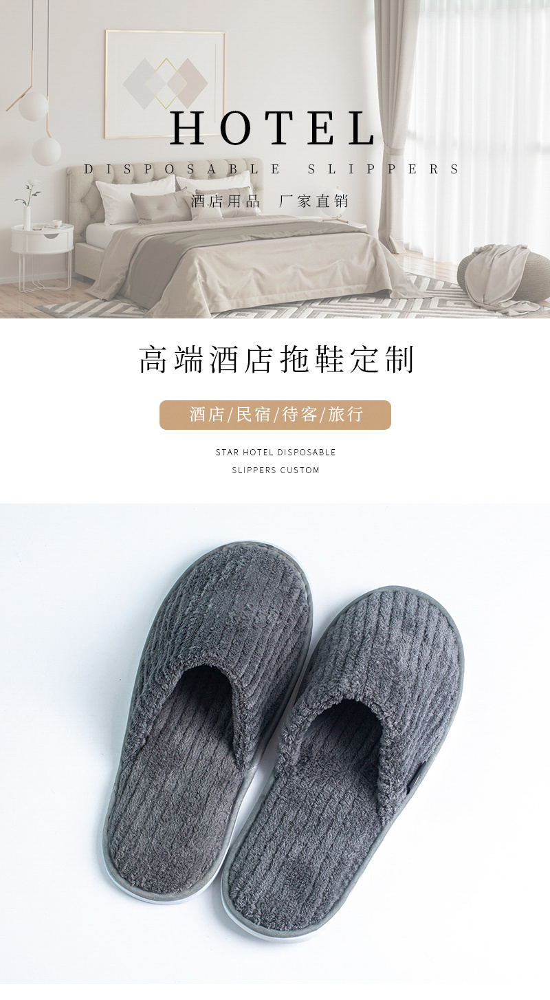 Hotel Hotel B & B rooms disposable slippers high-end strip drawing coral velvet slippers OEM customized wholesale