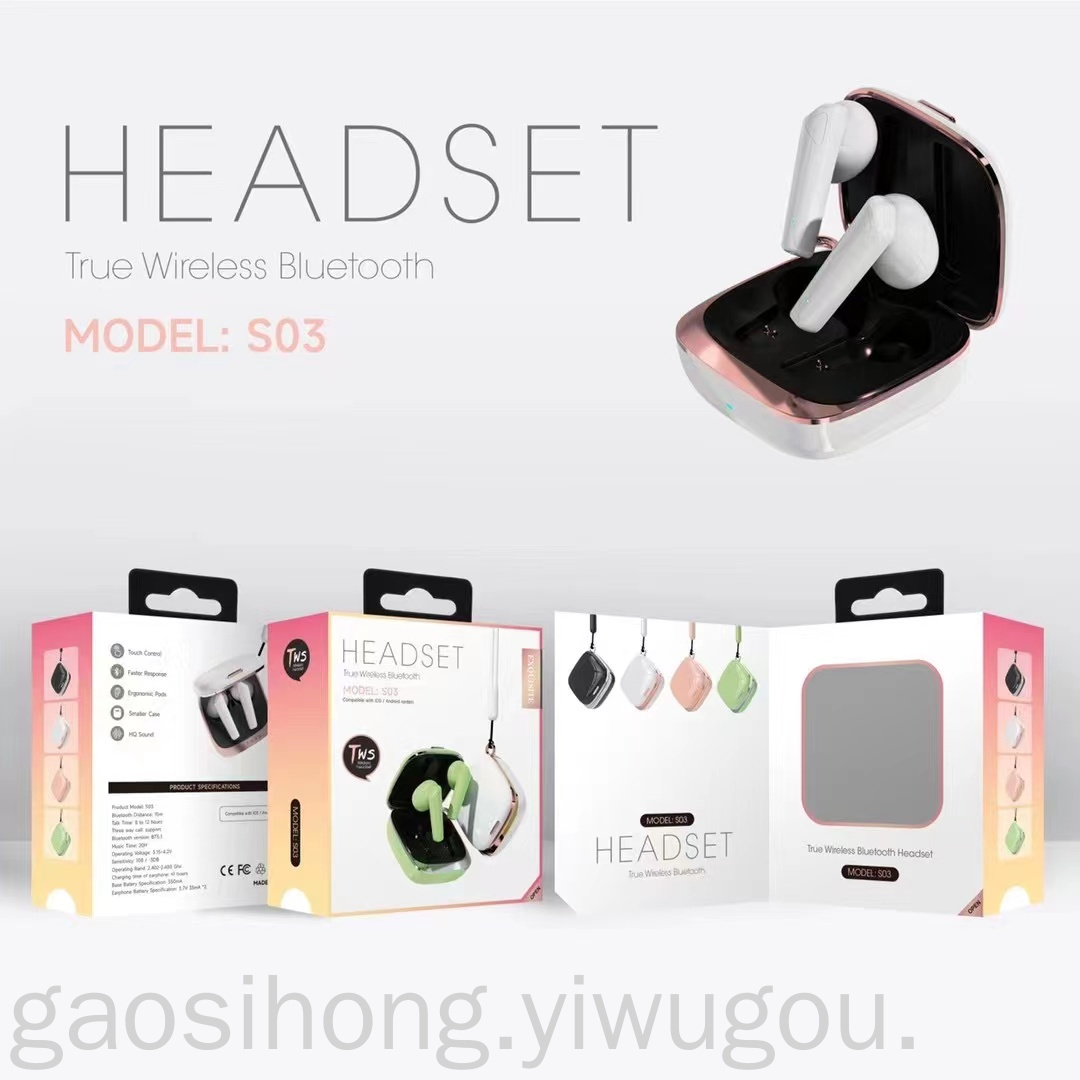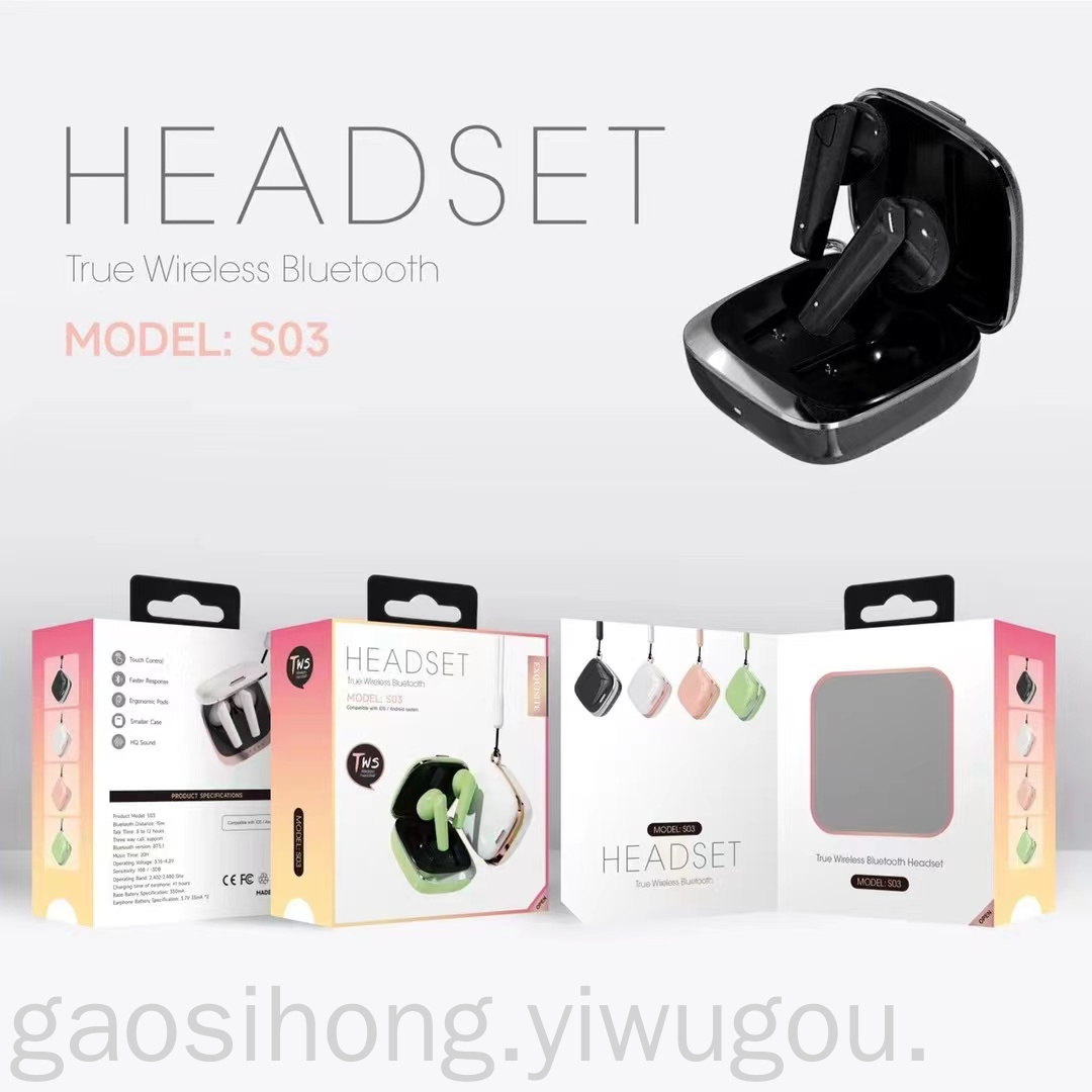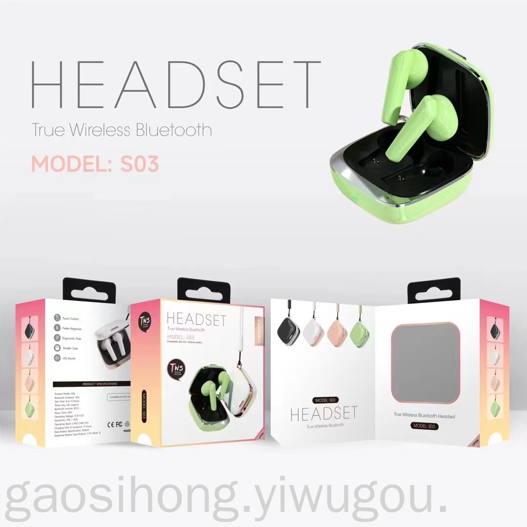 Gaming Headset for E-Sports TWS Headset Sports Private Model Black Technology S03 Macaron Headset Bluetooth Headset
