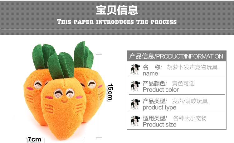 Dog New Pet Vegetable Toy Plush Sound Carrot 15 * 7cm