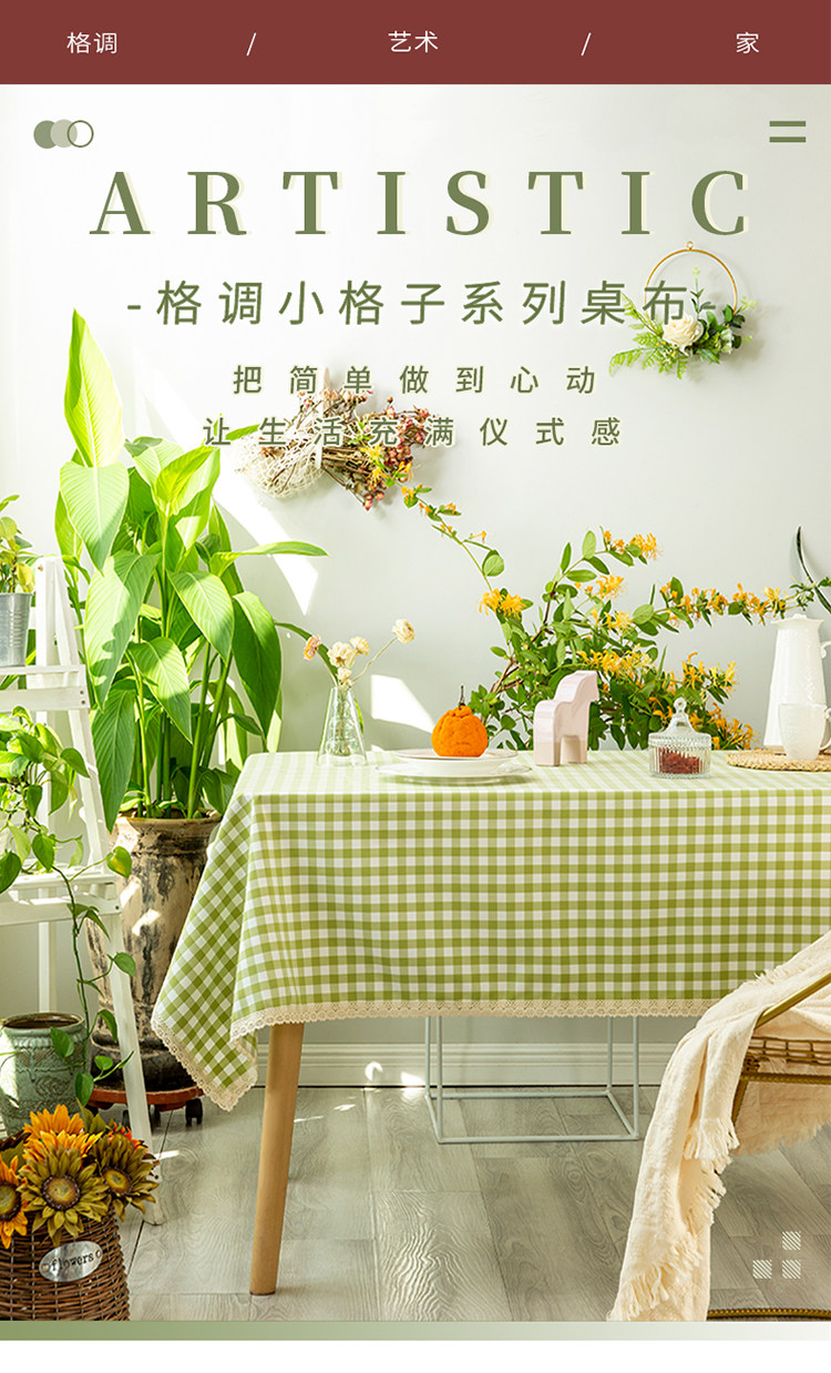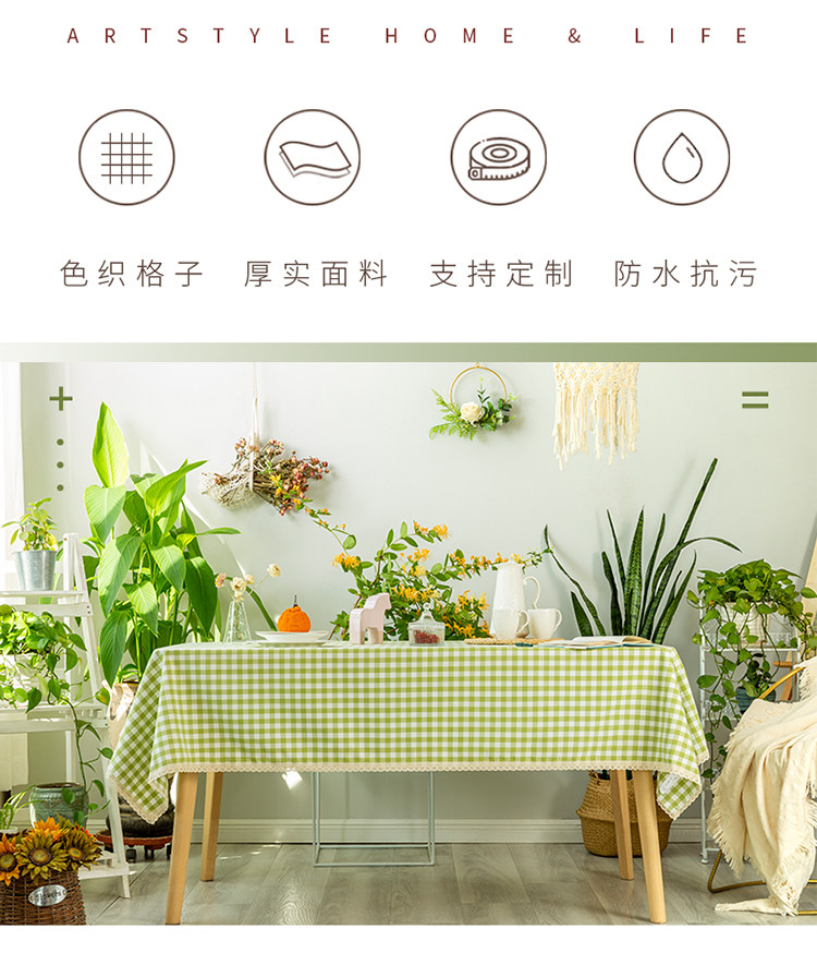 green small plaid curling tablecloth: 140 * 220cm