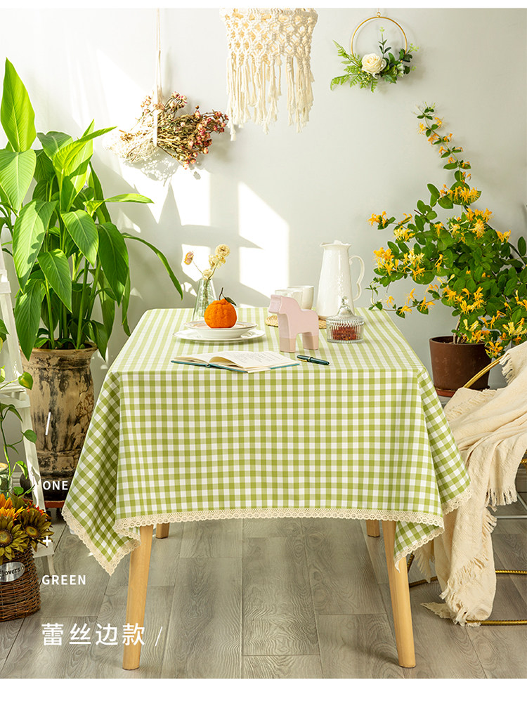 green small plaid nano waterproof lace tablecloth: 130 * 180cm