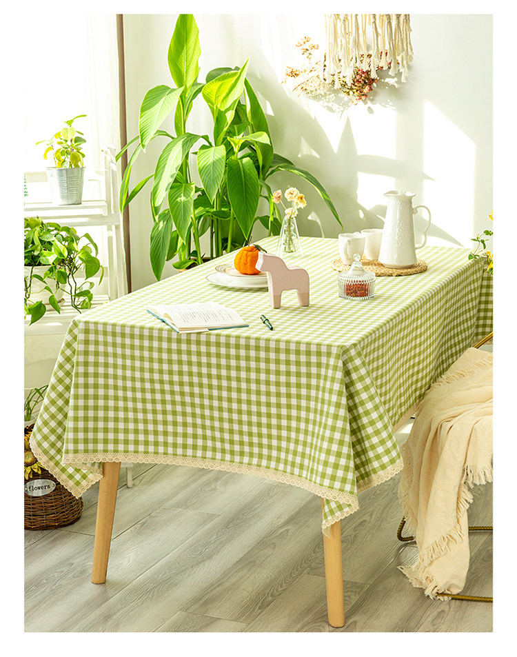green small plaid lace tablecloth: 120 * 180cm