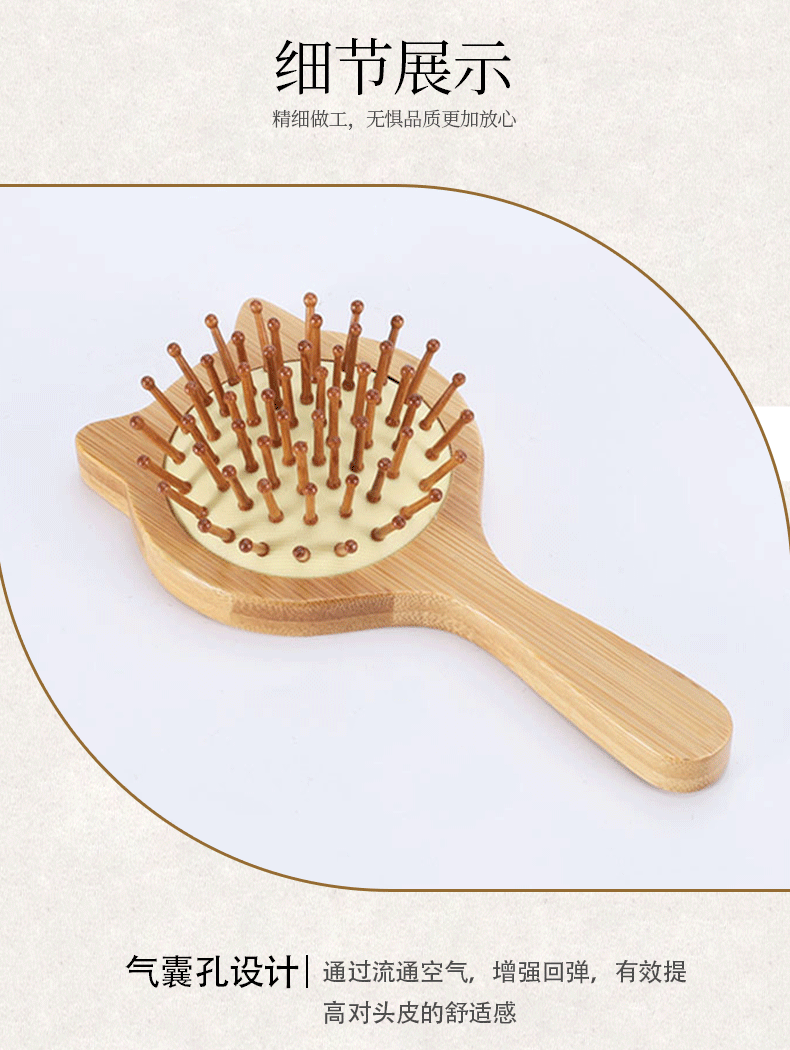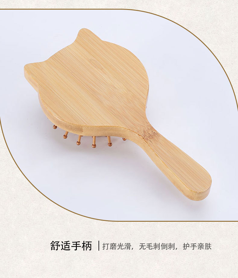 Exquisite Cat Ear Portable Small Wooden Comb Wood Color Bamboo Massage Comb Airbag Cushion Scalp Meridian Massage Comb