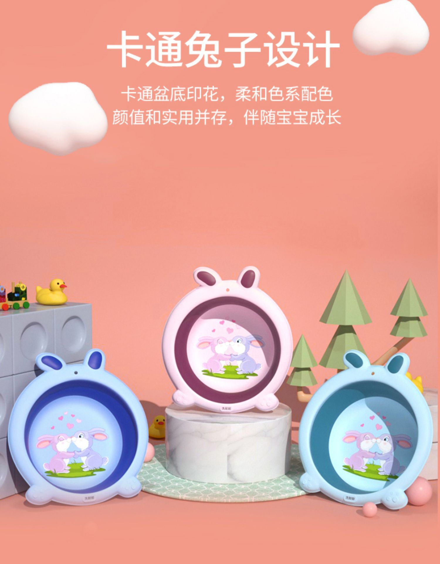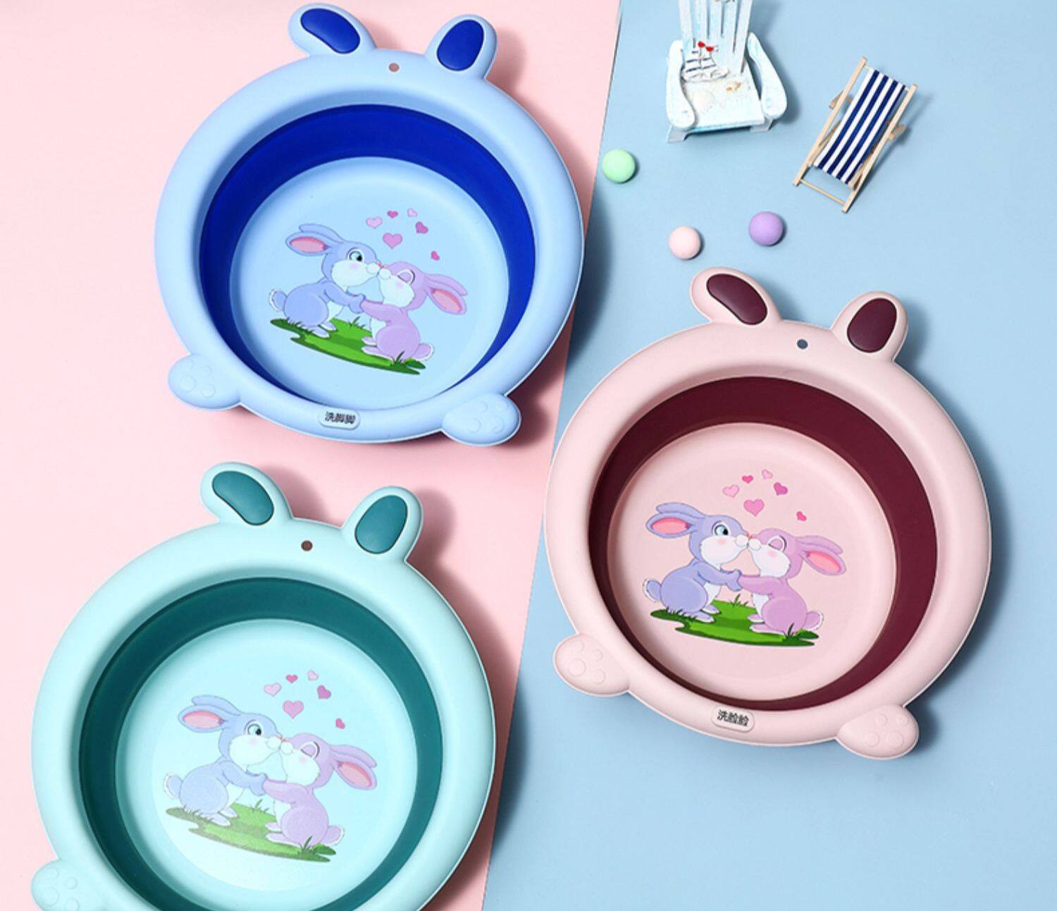 bunny folding basin-pink + blue