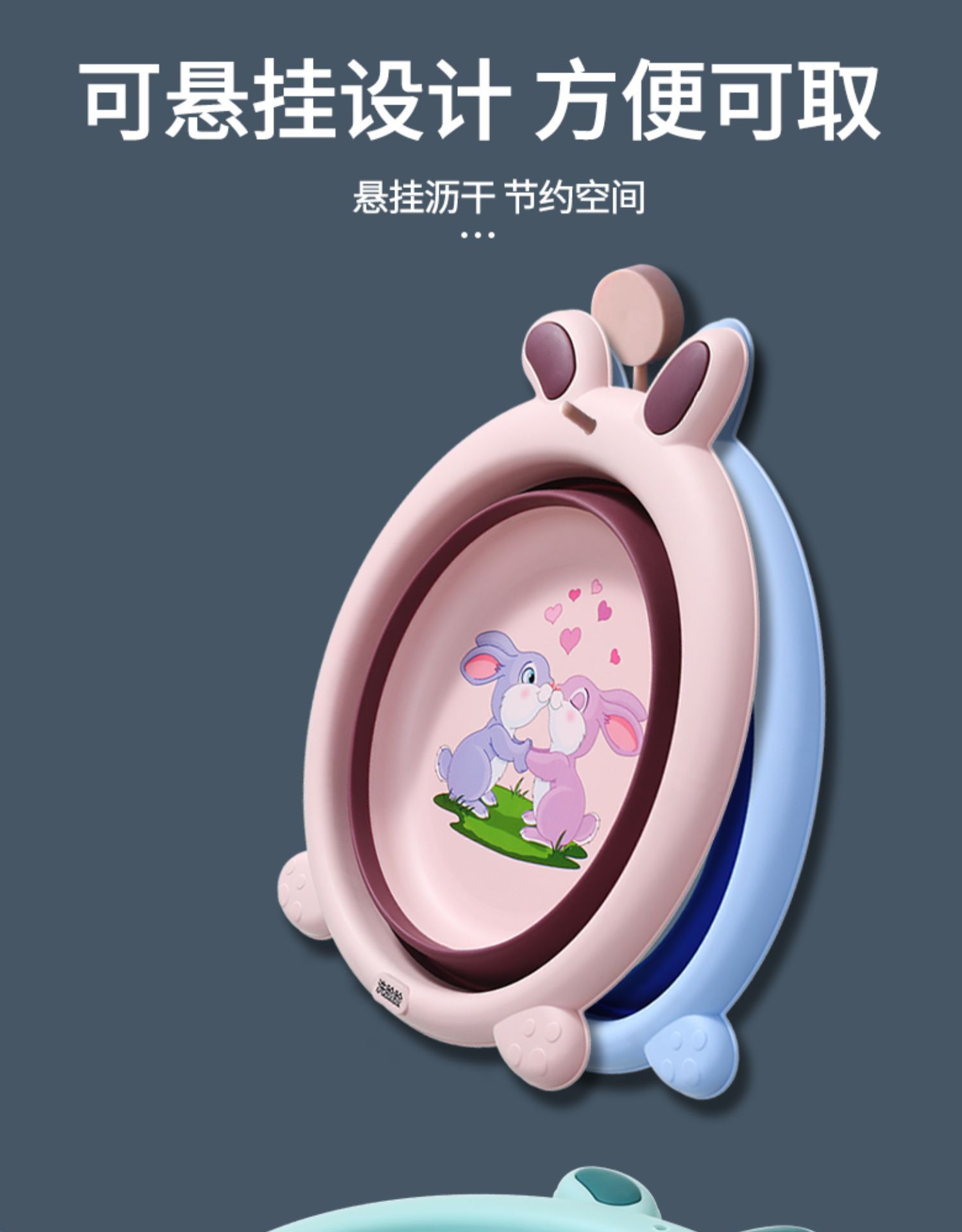 bunny folding basin-blue & green