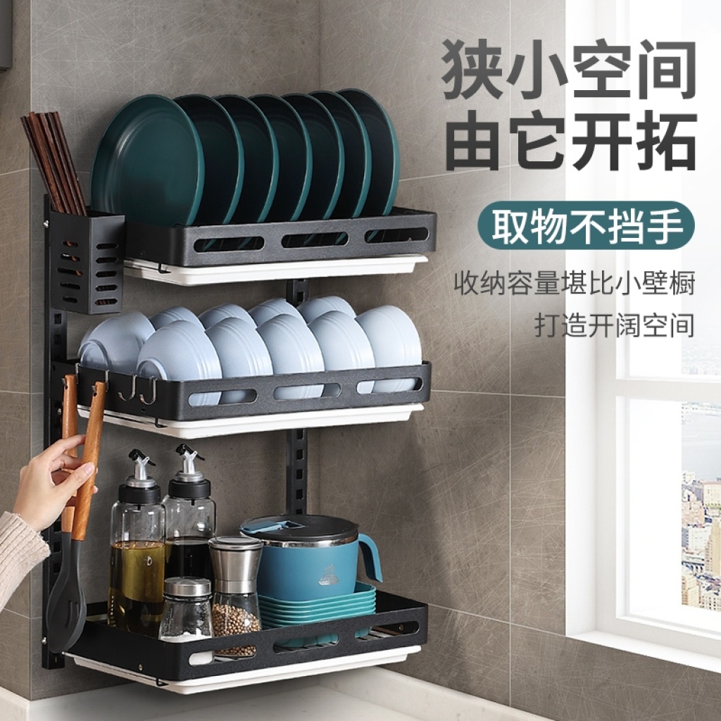 Kitchen storage rack bowl rack wall-mounted free punch Wall drying bowls and dishes Dish draining rack tableware storage box