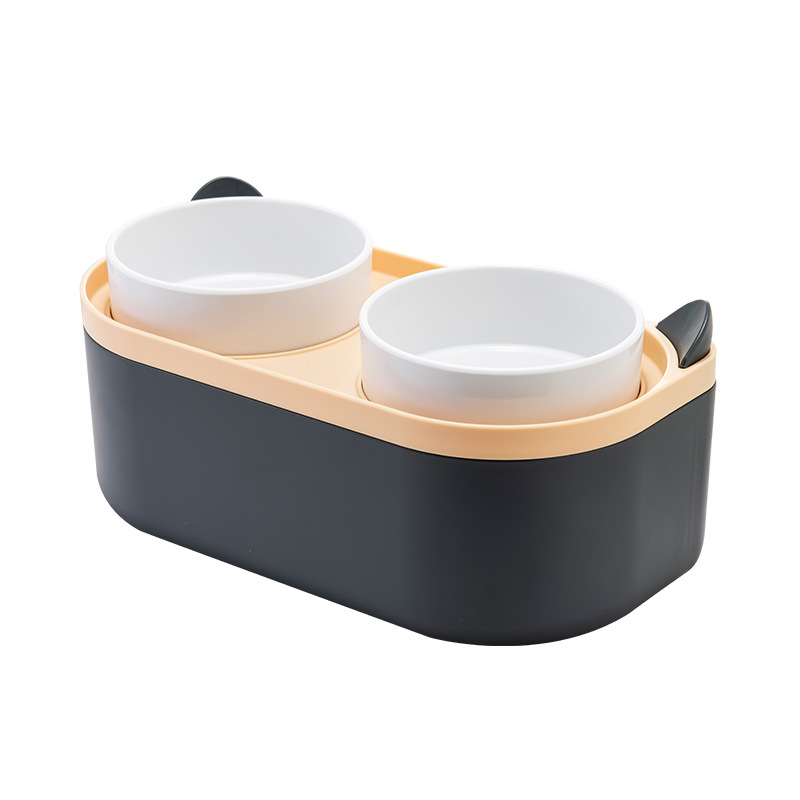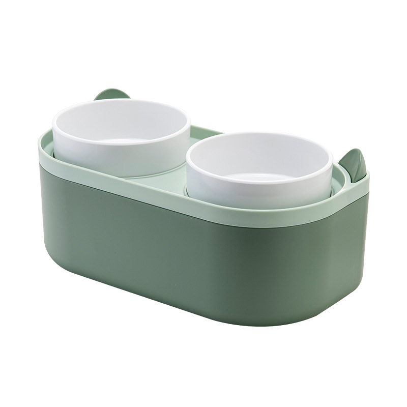 Pet supplies Amazon new storage food with spoon pet double bowl high-foot cat bowl wholesale neck protection cat bowl food bowl