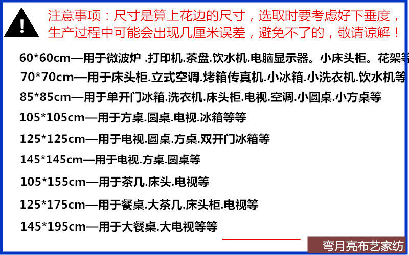 Material: The material is made of lace and cloth, not plastic. It is made of embroidered lace and lining, with a double-layer plus bottom lining process. It is a multi-purpose dust cover.