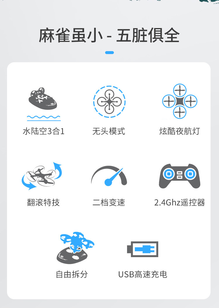 sea, land and air blue hovercraft (hot sale): single battery