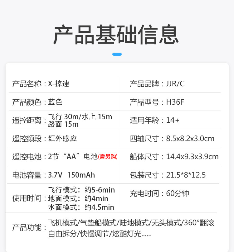 sea, land and air blue hovercraft (hot sale): dual battery