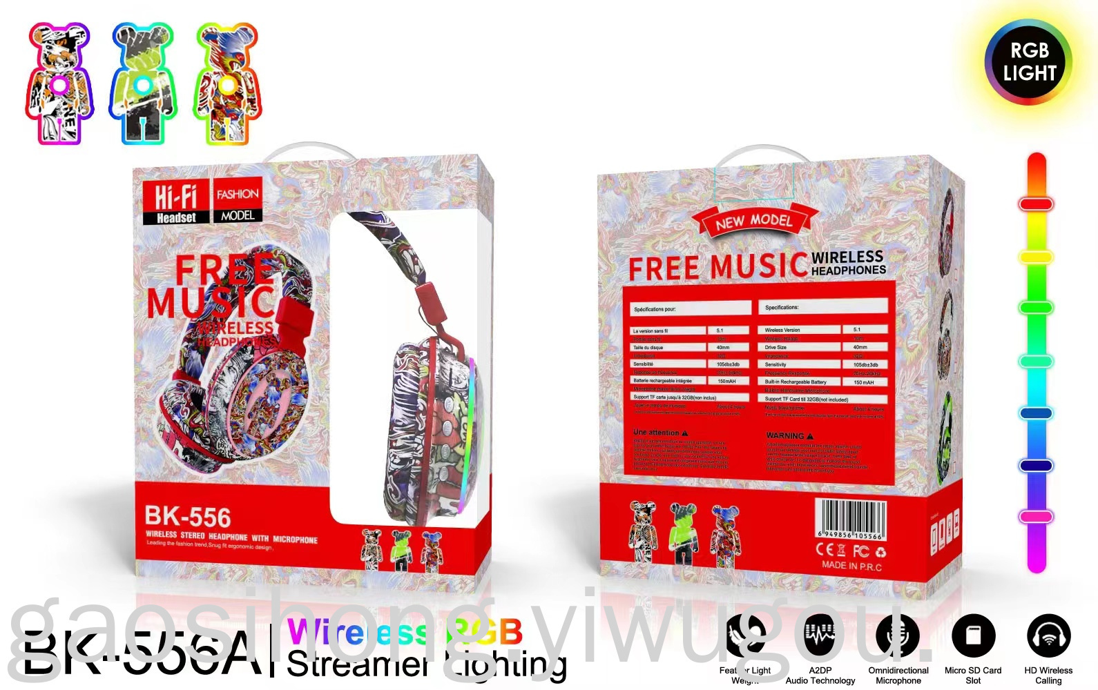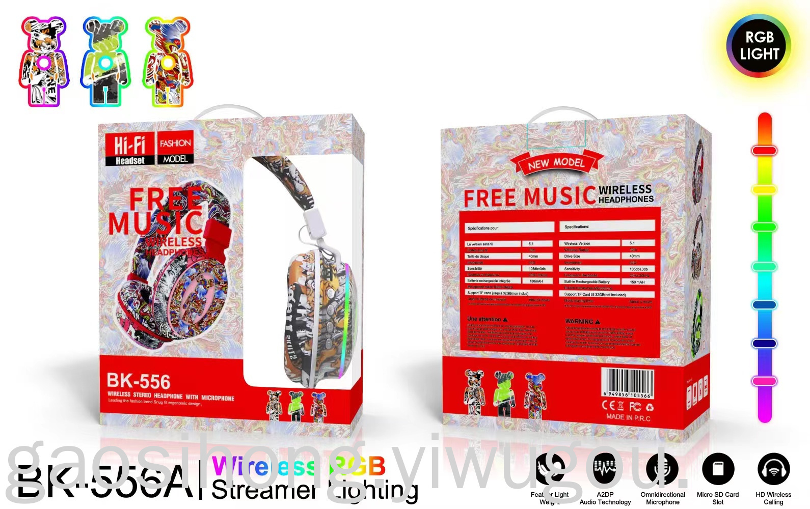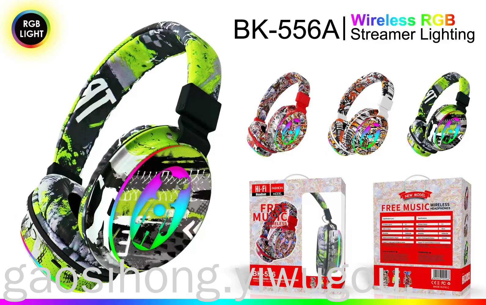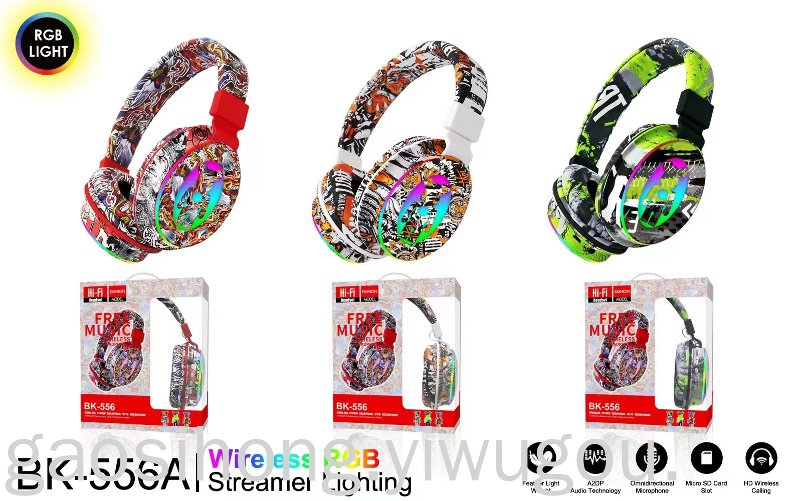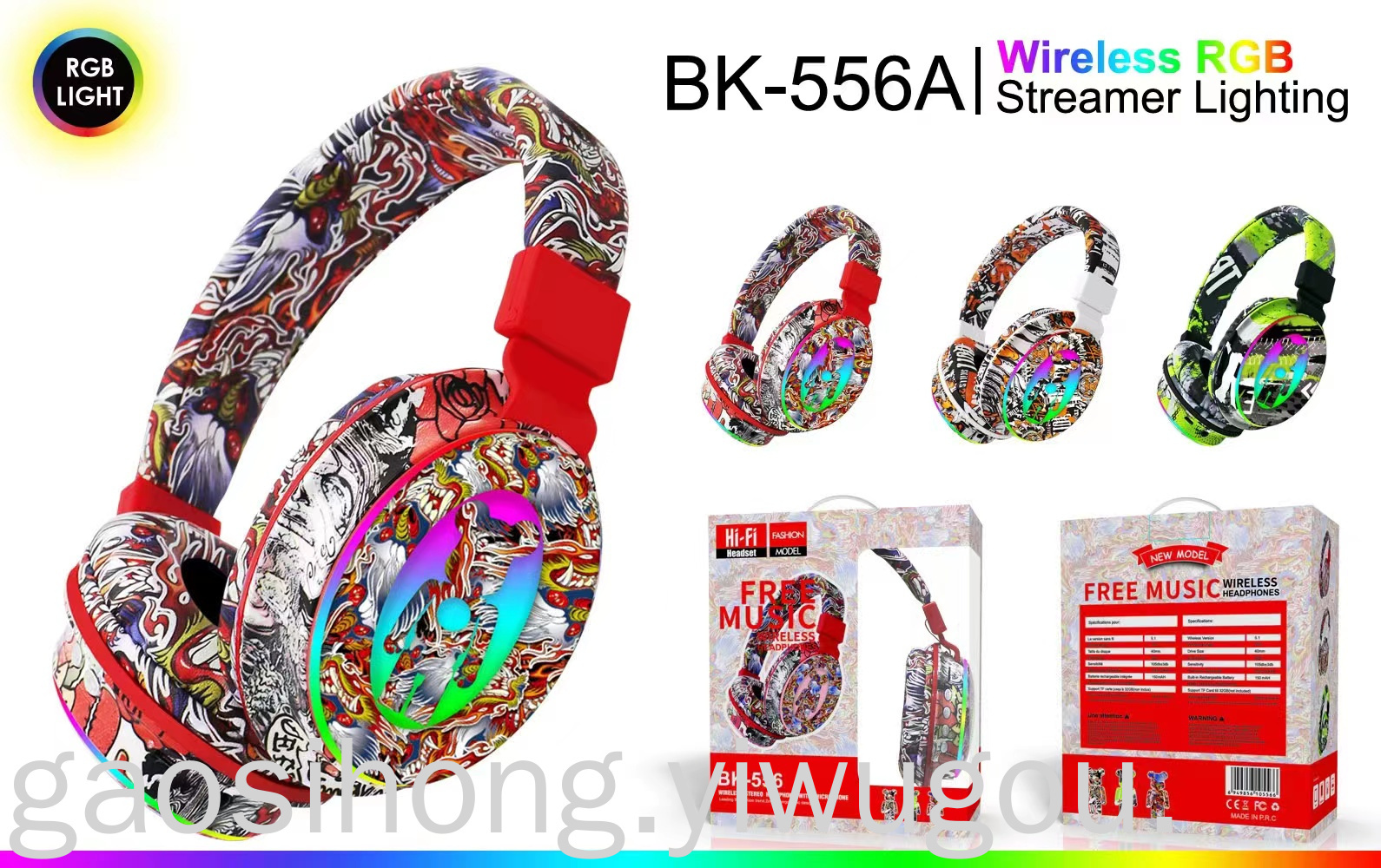 New Headset Bluetooth Headset BK-556A Game Dynamic Bass Boost Headset Manufacturers National Fashion Graffiti Headset