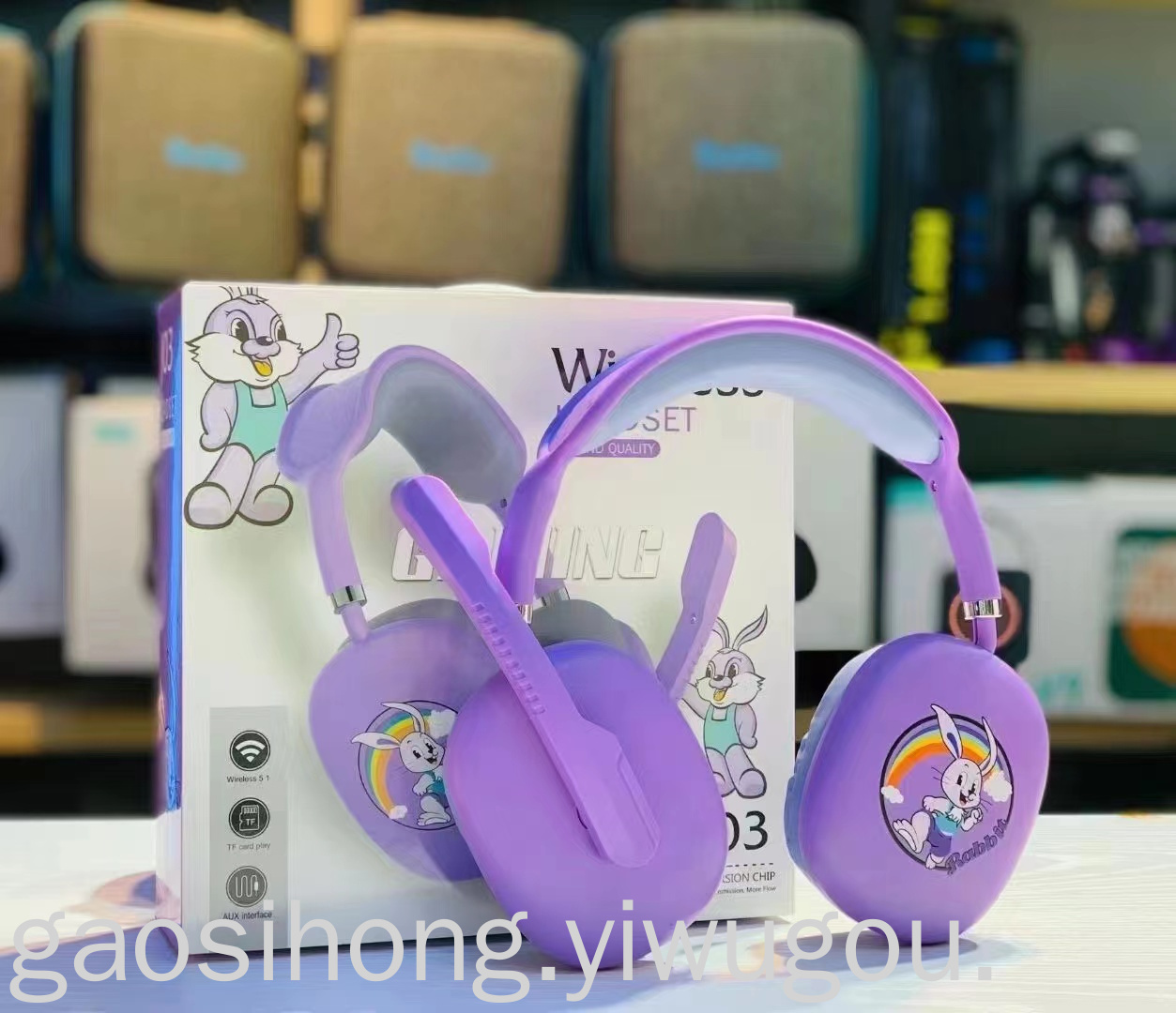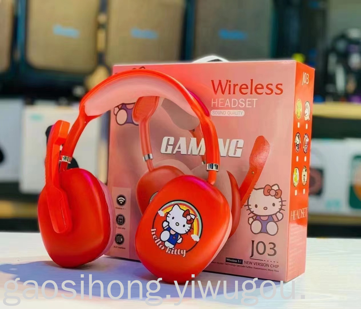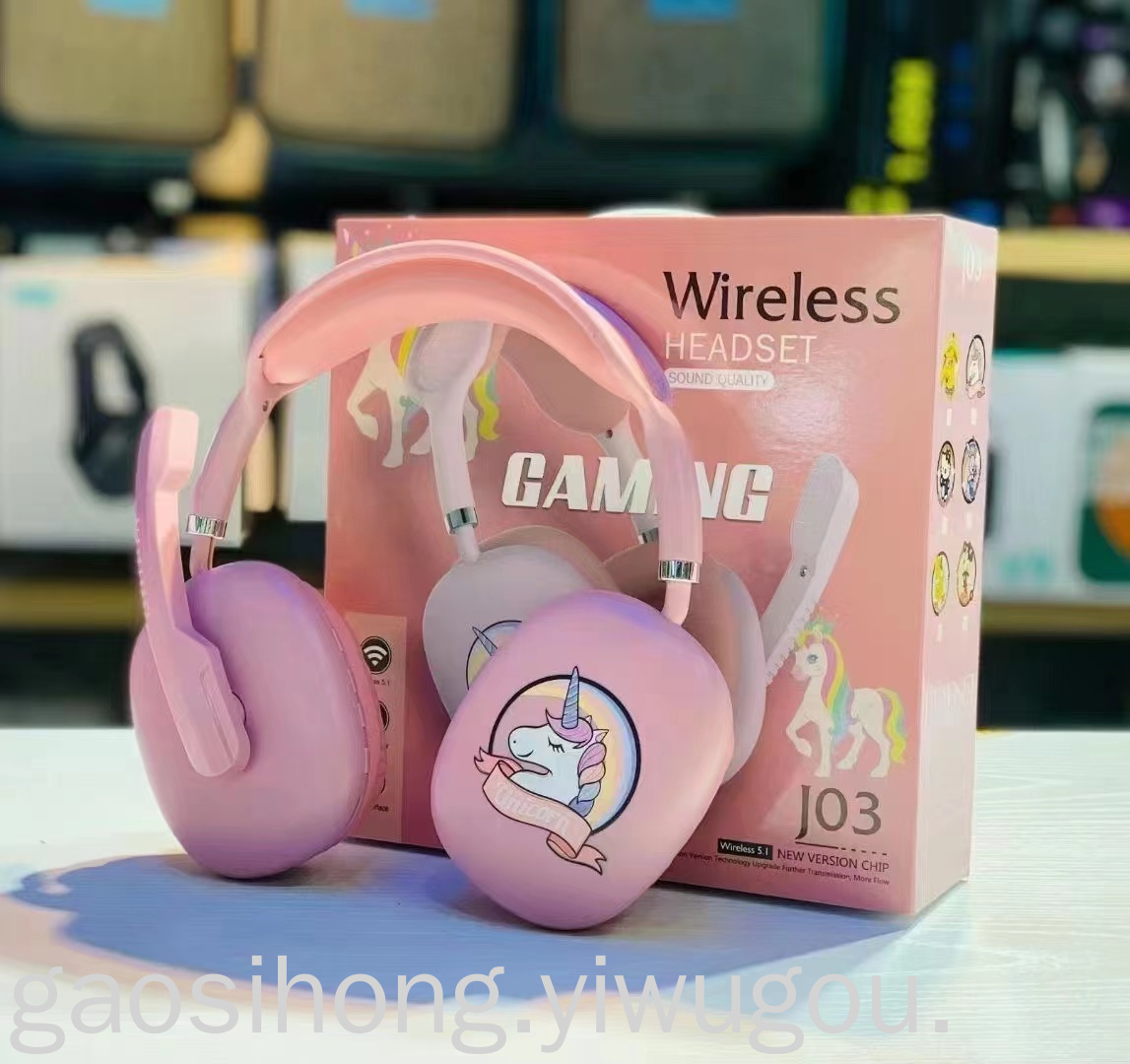 Wired Cartoon Cute Headset Headset with Microphone Luminous Cat Ear Headset Folding Computer Gaming Headset J-03