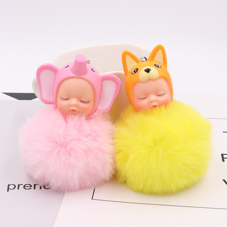 Product NameCute Sleeping Doll Fuzzy Keychain Creative Cartoons Car Keychain Plush Doll Bag Hook