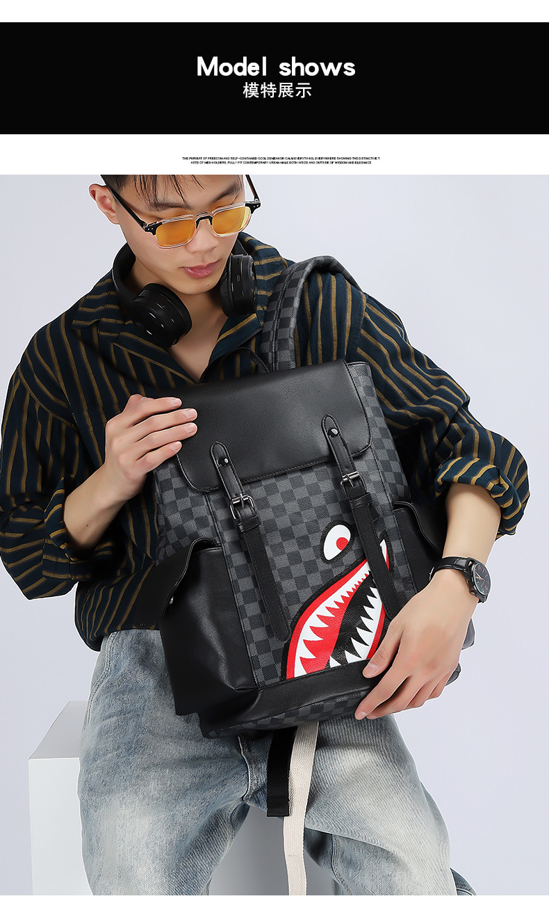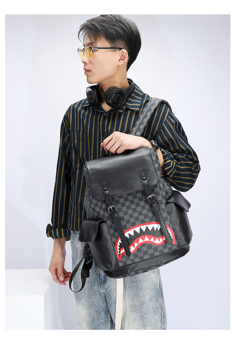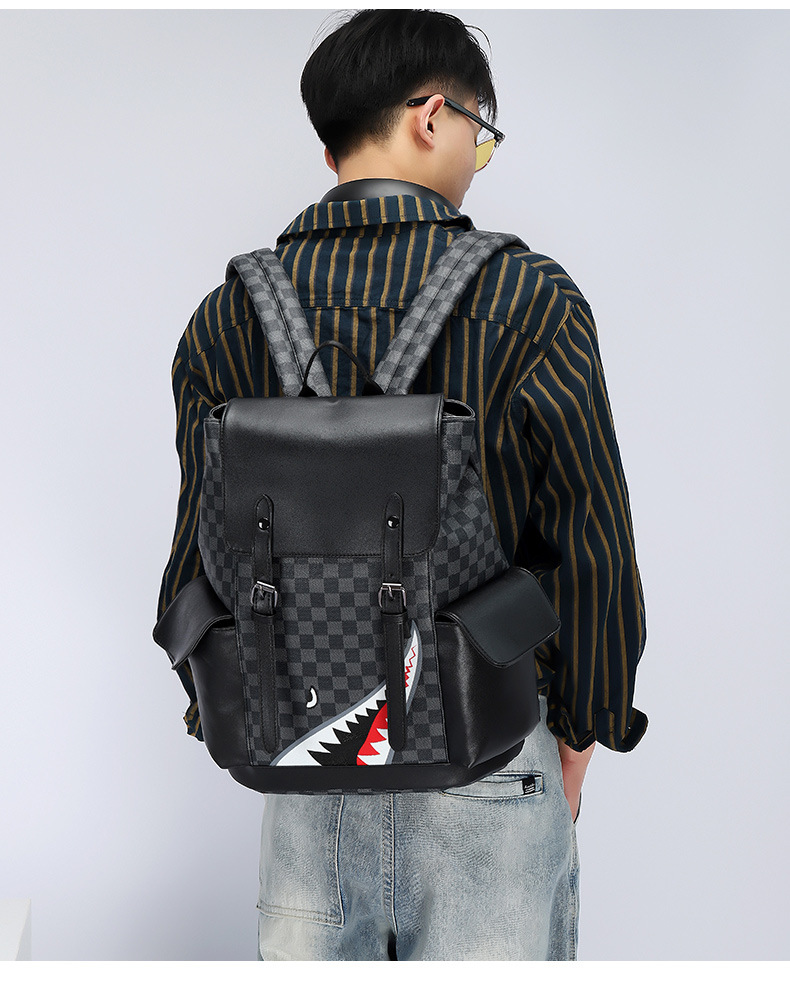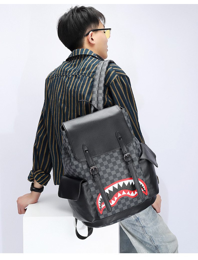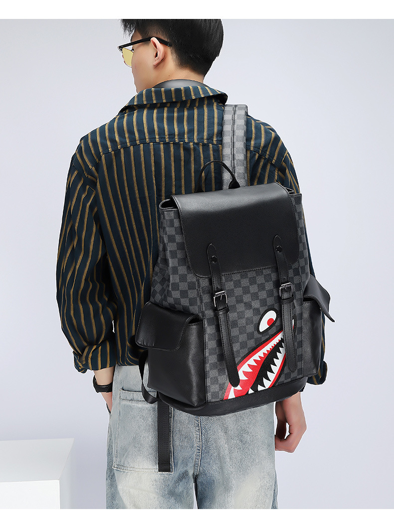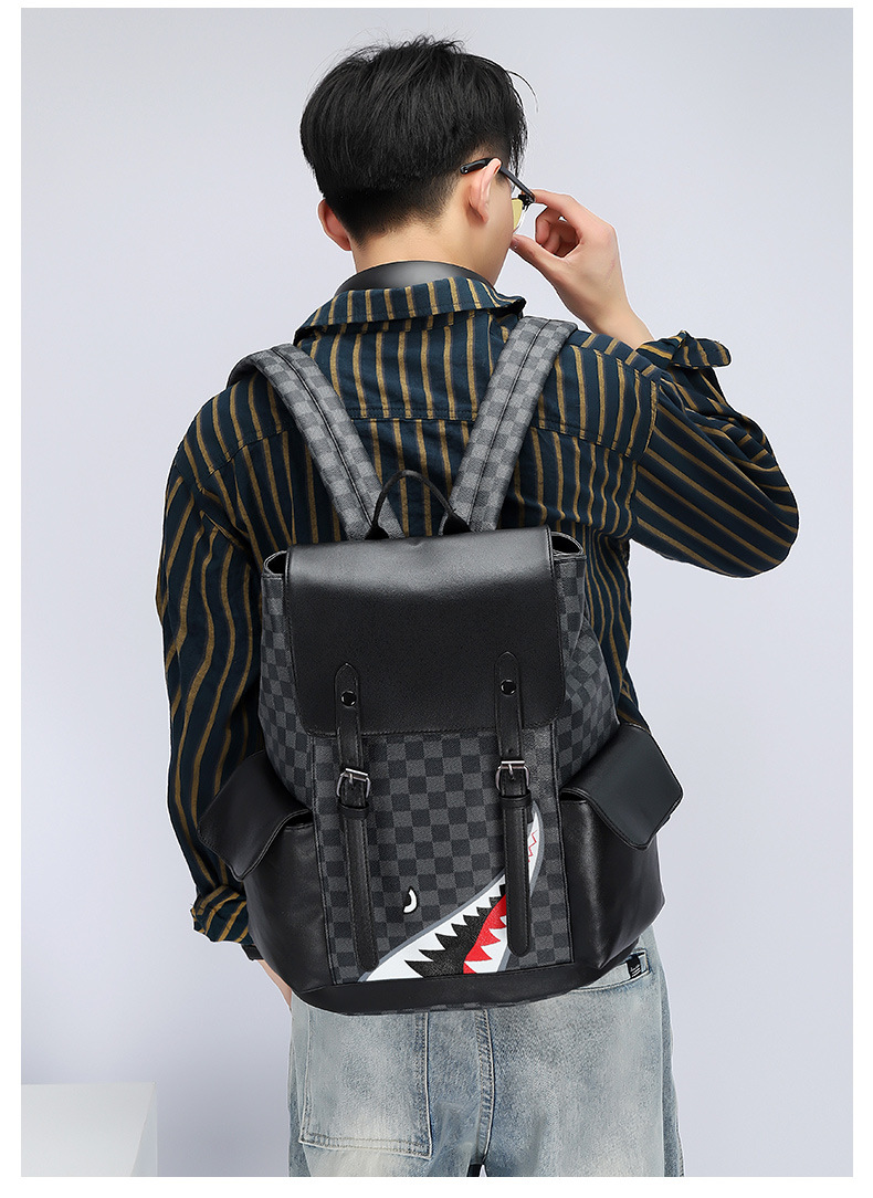 Fashion Brand Retro Backpack Spring New Pu Men's Casual Double Back Large Capacity Middle School Student Bag