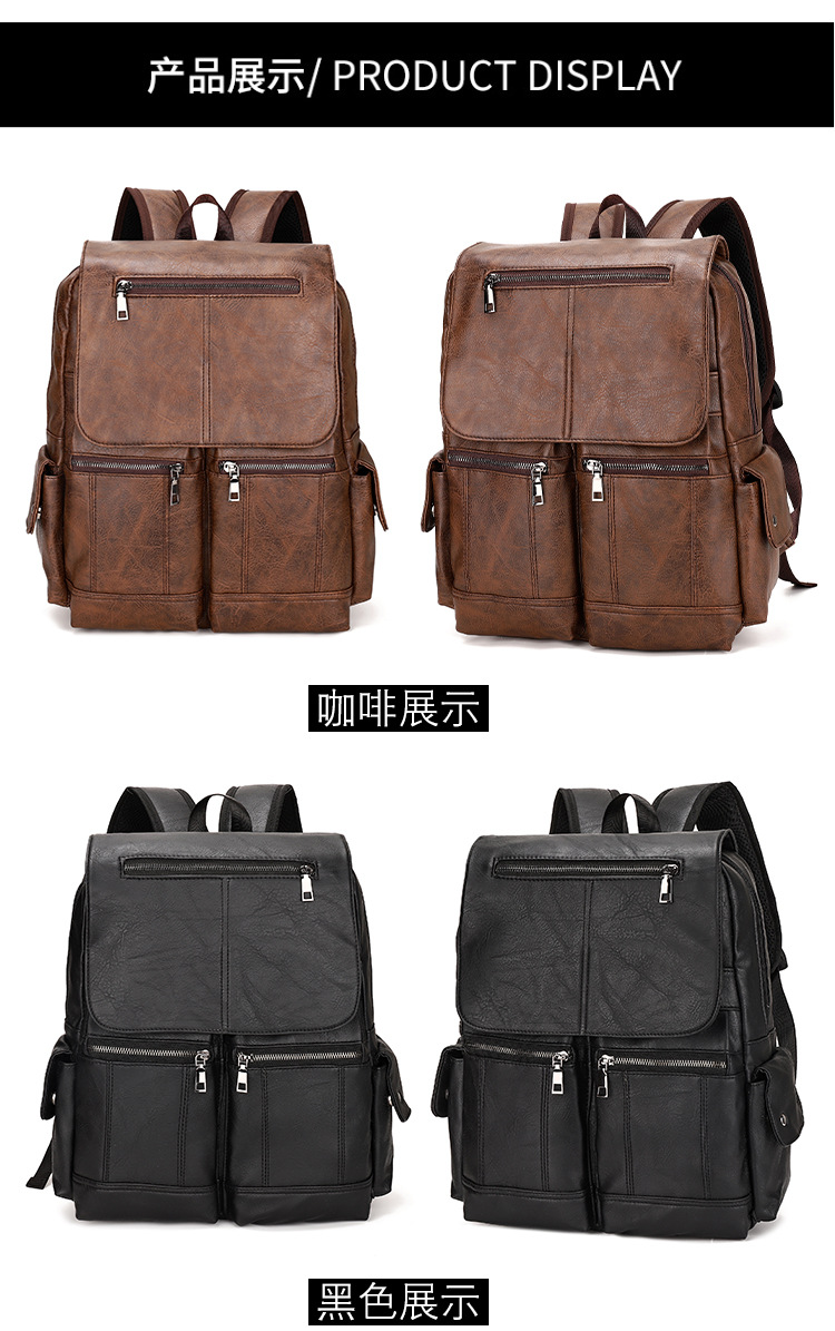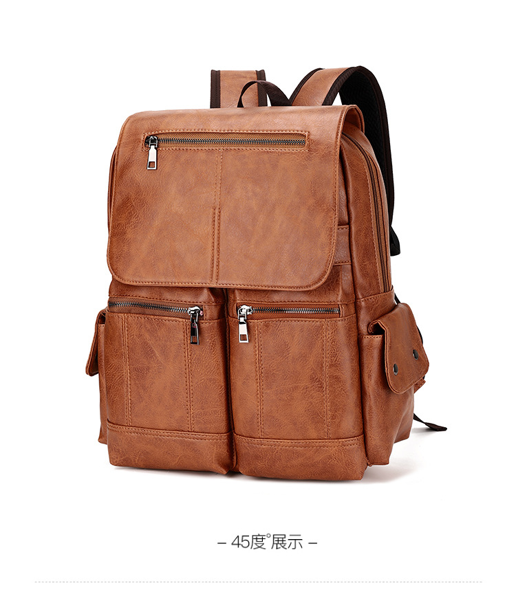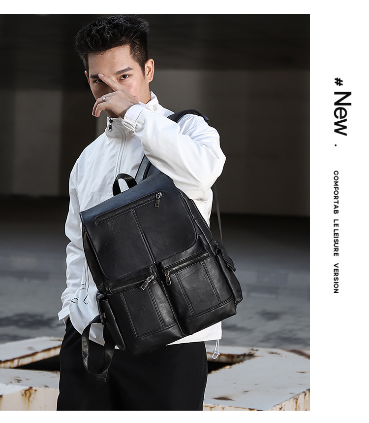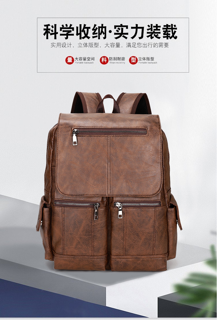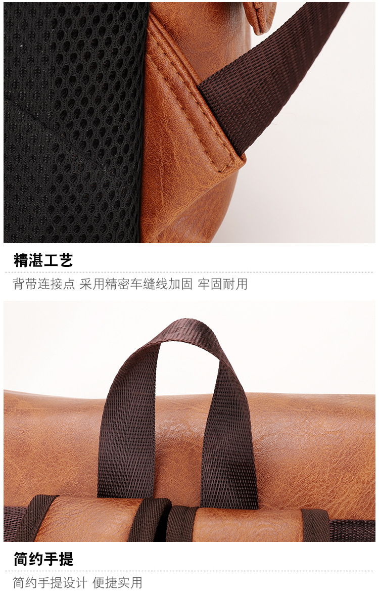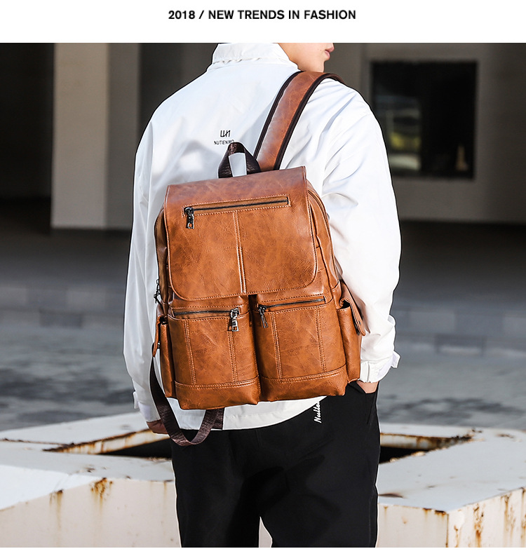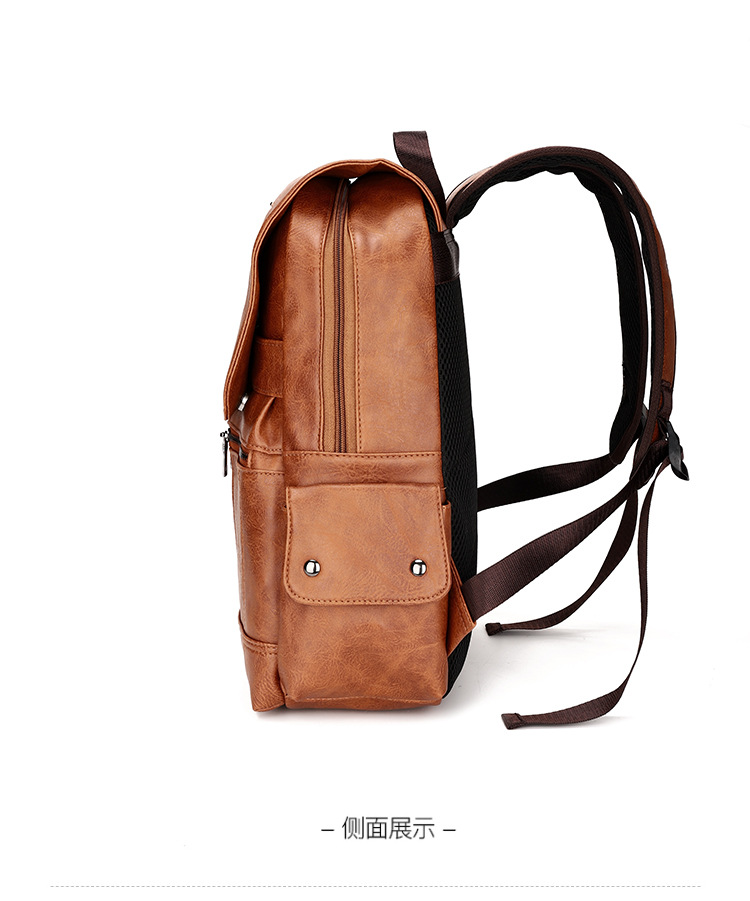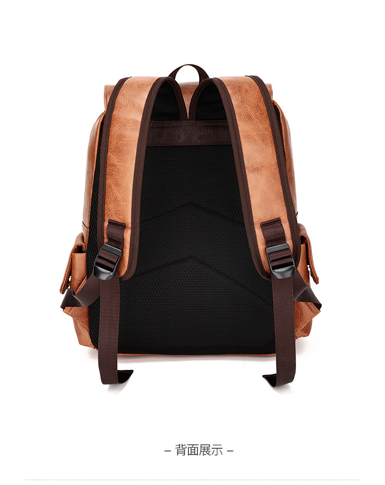 New Retro PU Leather Backpack Men's Fashion College Students Bag Casual Computer Bag
