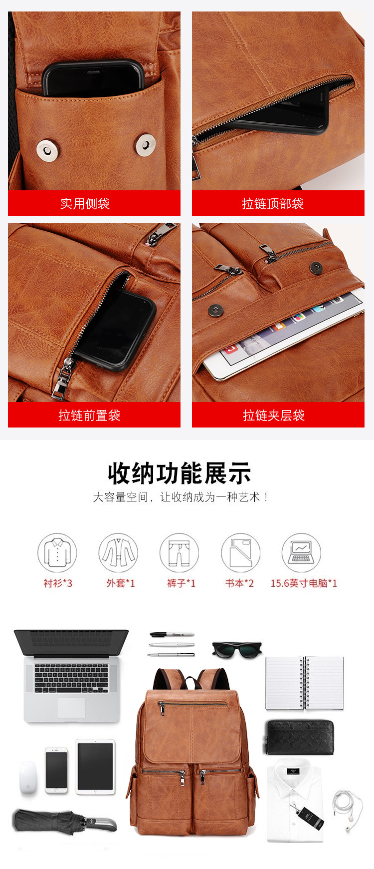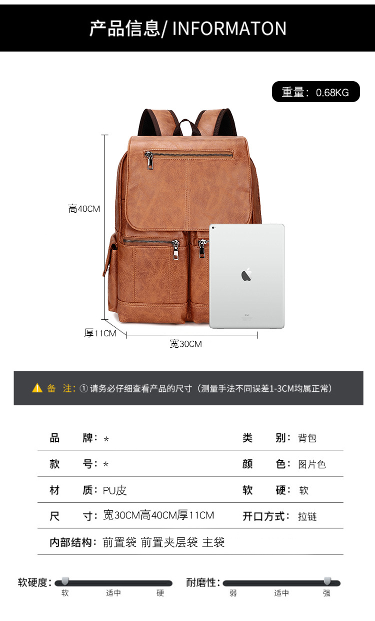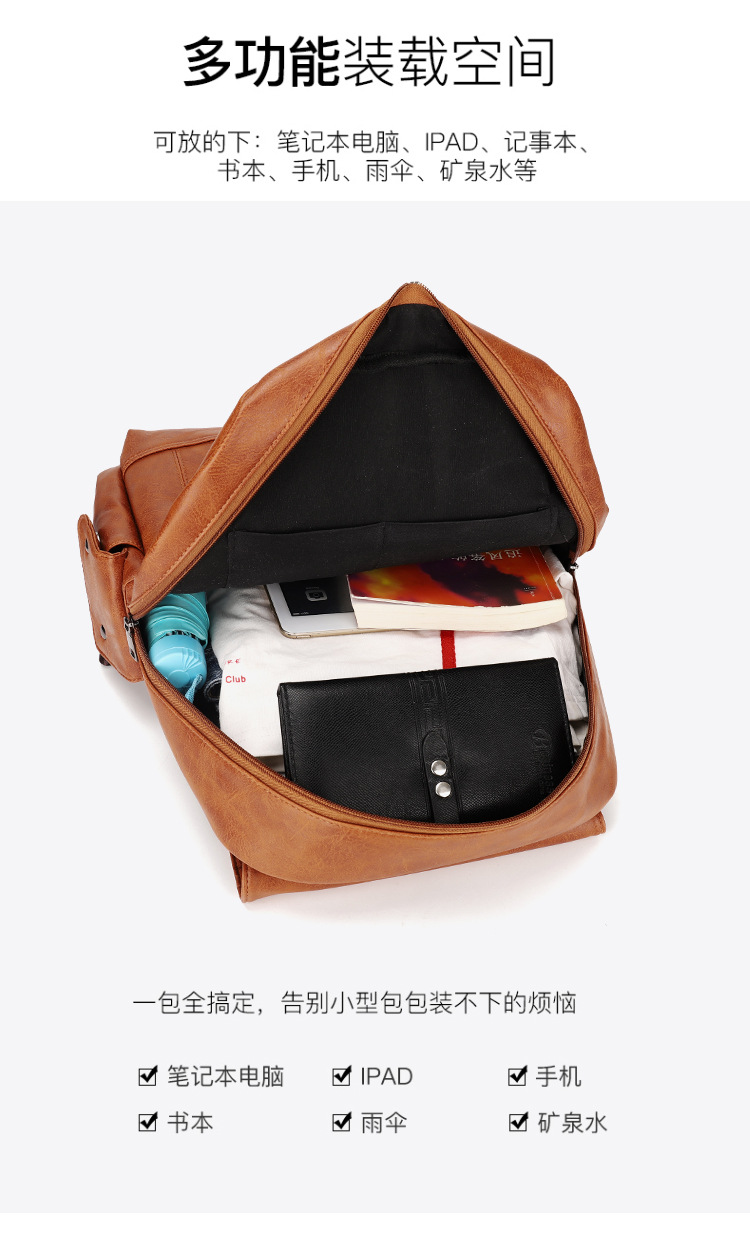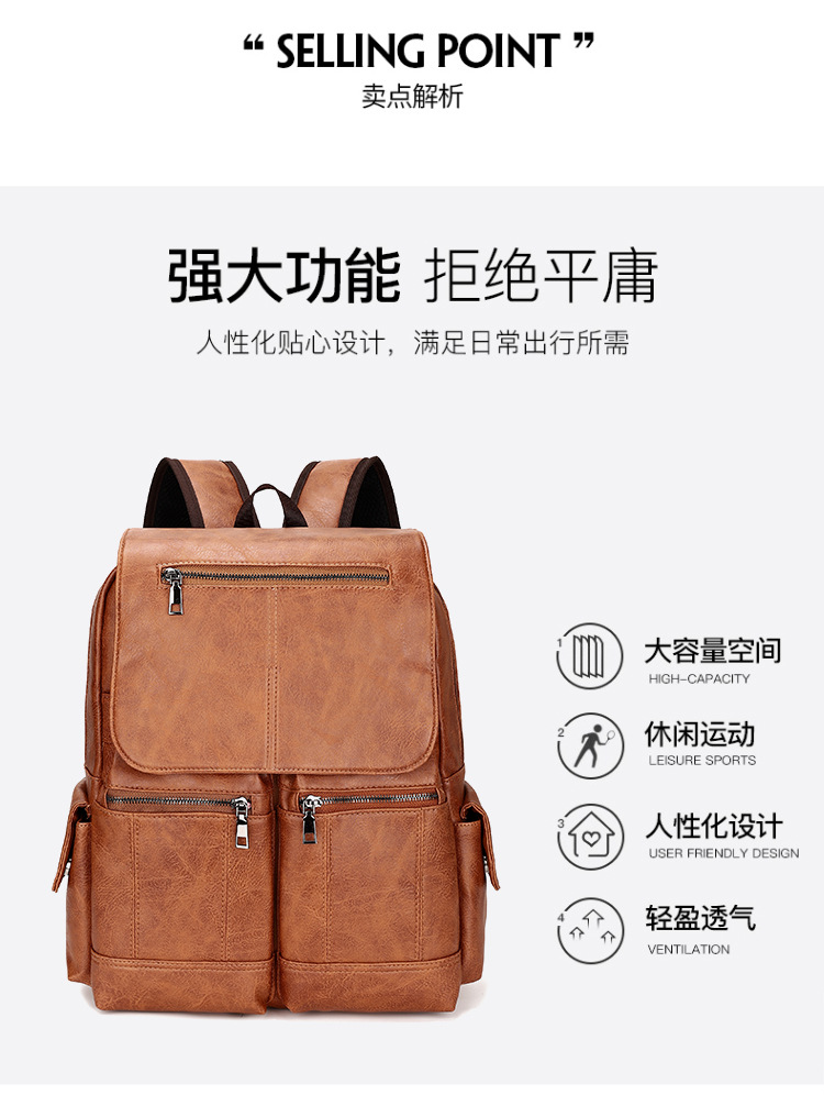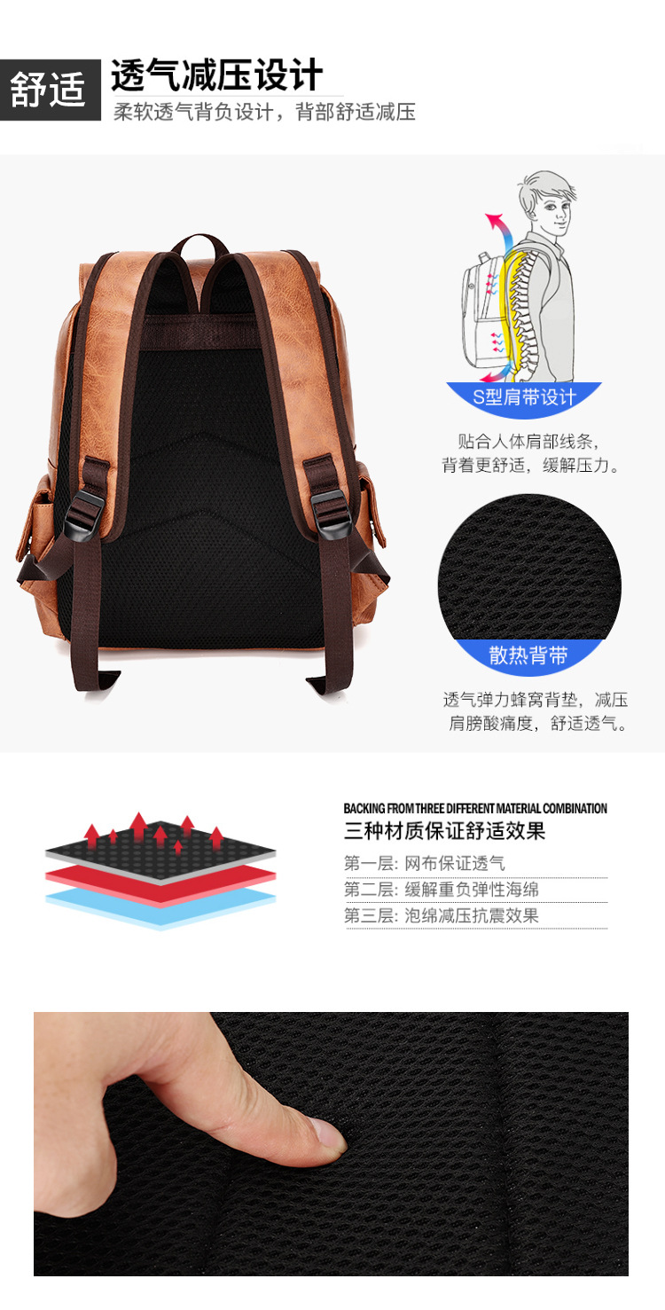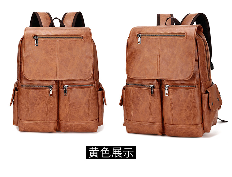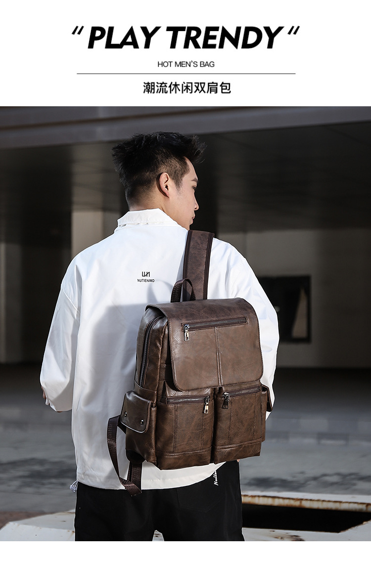 New Retro PU Leather Backpack Men's Fashion College Students Bag Casual Computer Bag