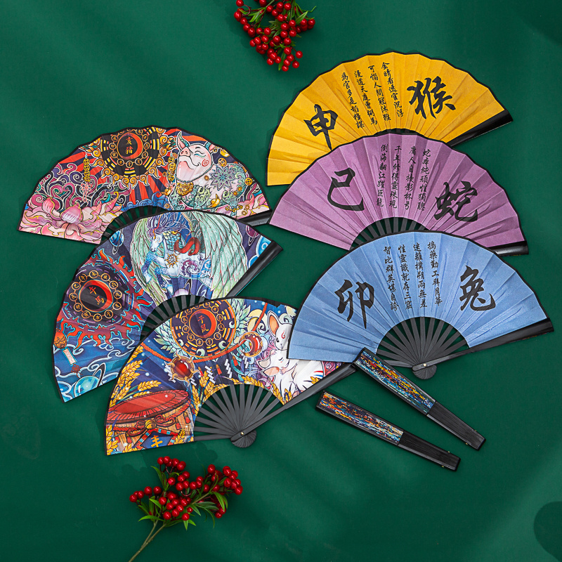 8-Inch Zodiac New National Fashion Fan Chinese Ancient Style Ghatpot Silk Folding Fan Subnet Red Students Wholesale Fan
